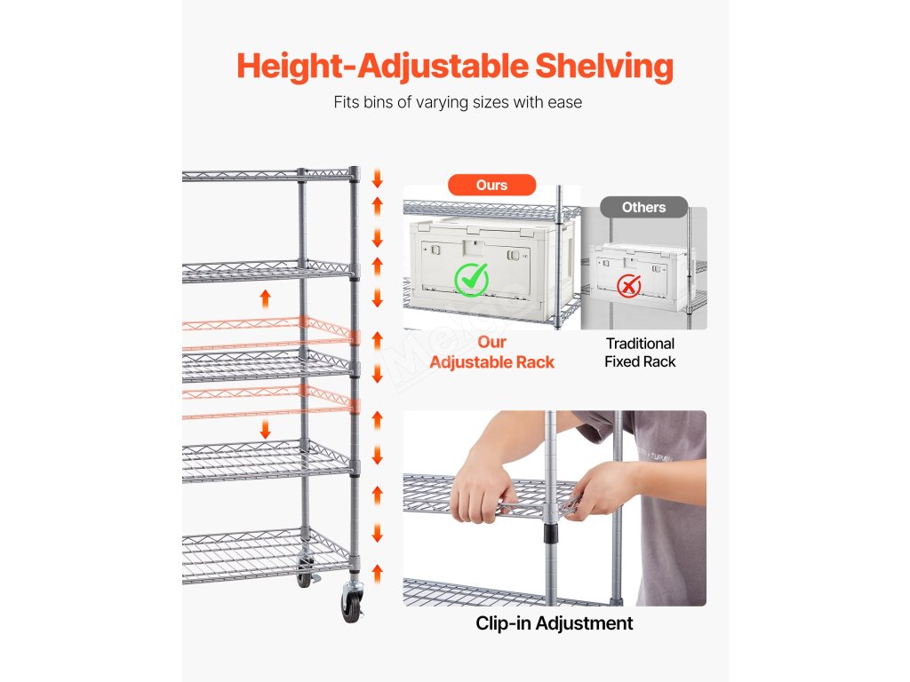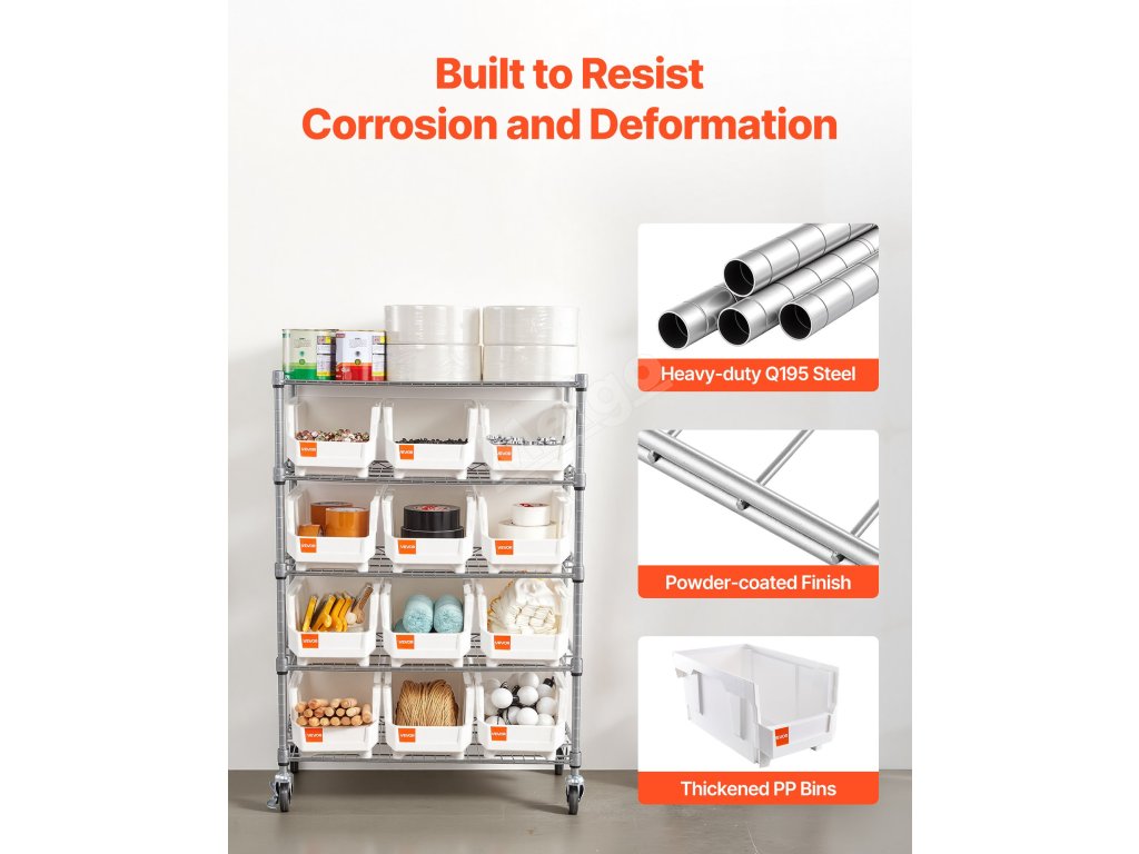 Každý regál na uspořádání košů unese až 115 liber (52,2 kg) pro jisté každodenní použití. Práškově lakovaný rám regálu Q195 je odolný proti opotřebení, zatímco robustní koše z PP a zvýšené kolejnice pomáhají udržet předměty přesně tam, kde je chcete mít.