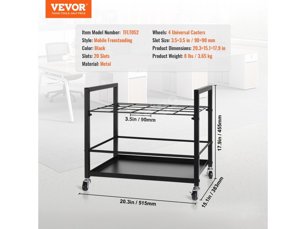 Regál na výkresy a plakáty, 20 slotů, na kolečkách, kovový