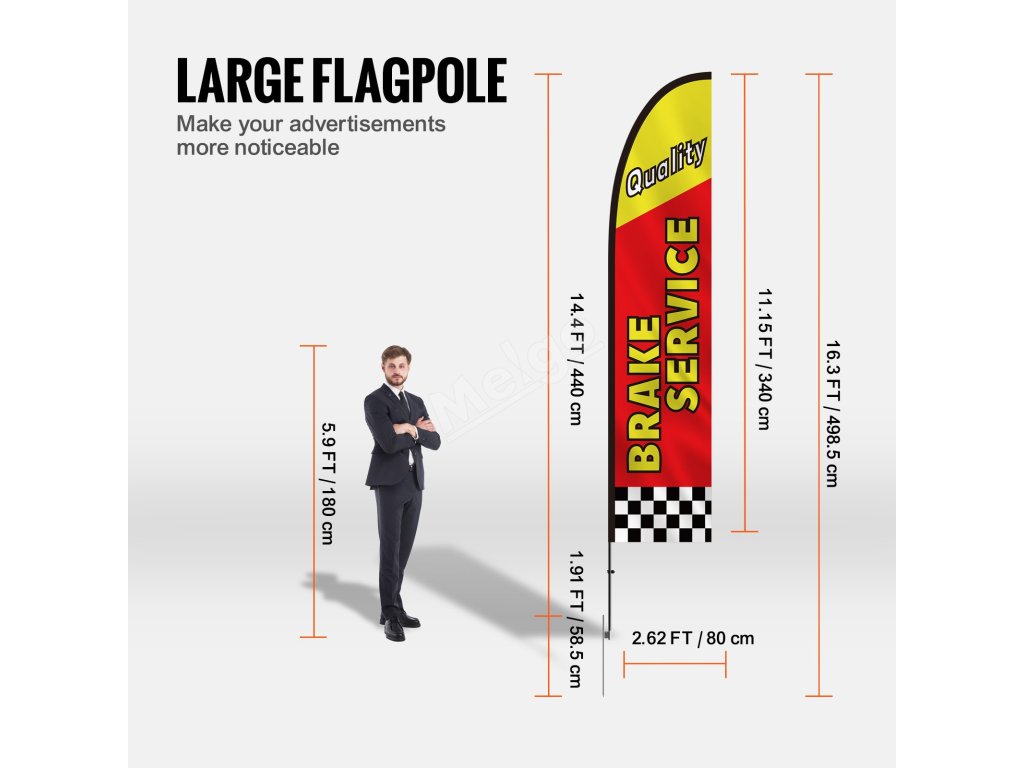 Naše sada stožárů s peřím, která má výšku 14,4 ft/440 cm a celkovou výšku 16,3 ft/498,5 cm, se dokonale hodí ke stožáru o rozměrech 11,15 x 2,62 ft. Velká velikost zvyšuje vizuální dopad a rozpoznatelnost značky, díky čemuž vaše reklama vynikne mezi konkurencí.