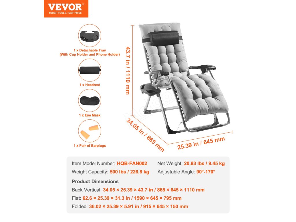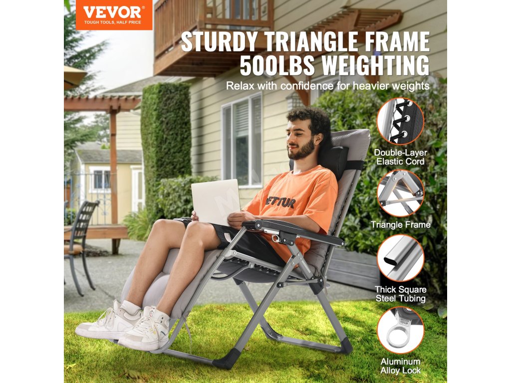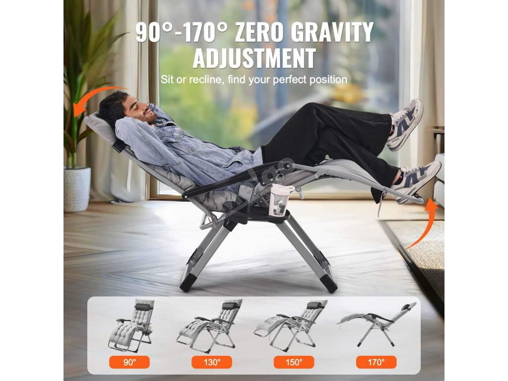 Relaxační křeslo zero gravity 26 inch s polštářem, nosnost 500 lbs