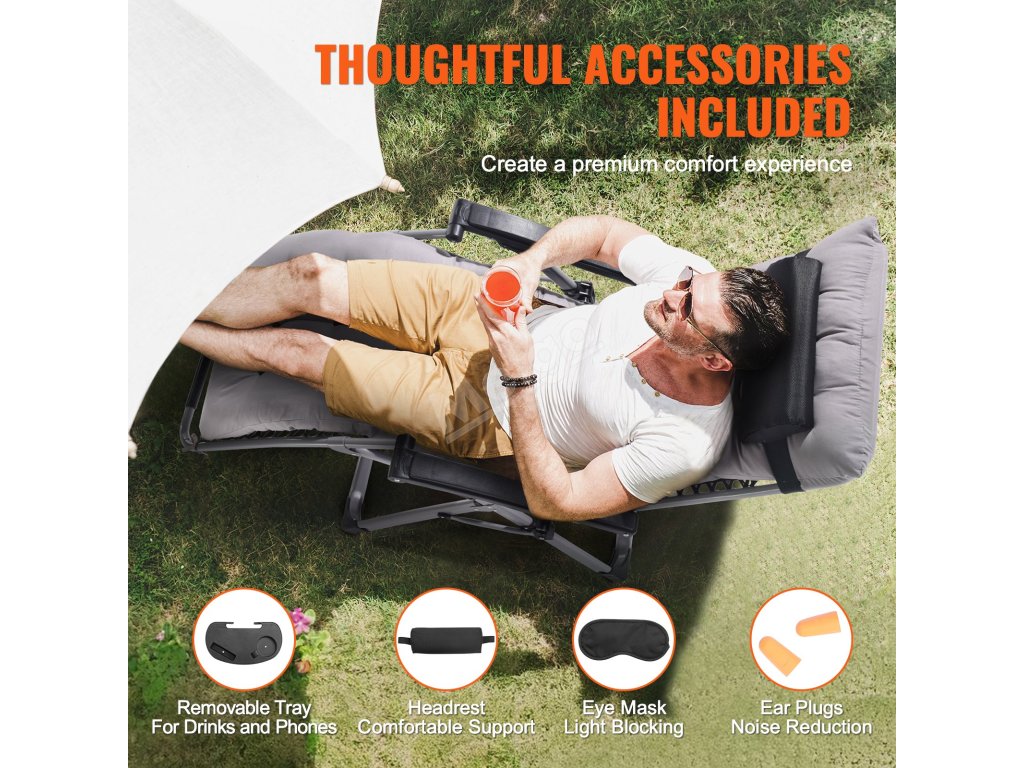 Tato skládací židle s nulovou gravitací se rychle skládá pro pohodlné skladování a snadné přenášení, takže se stane praktickým doplňkem vašeho života.