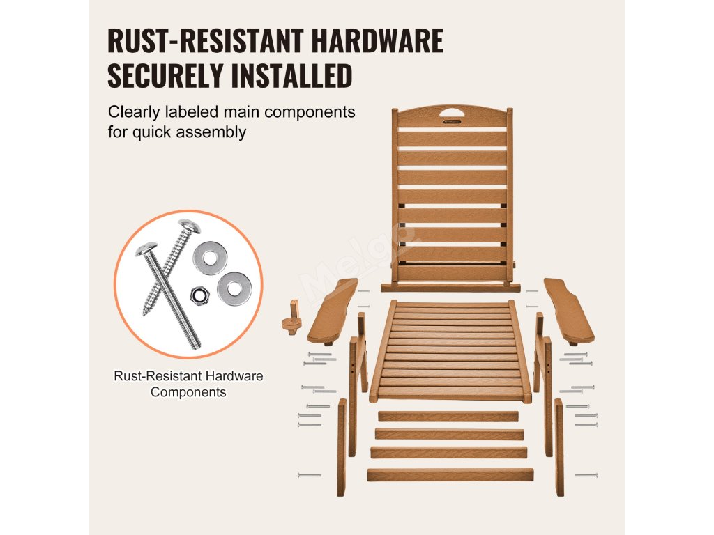 Toto lehátko je vyrobeno z HDPE, odolává všem povětrnostním podmínkám a je odolné proti vyblednutí a popraskání. Je ideální pro venkovní použití a stačí ho jen rychle otřít mýdlovou vodou, aby vypadalo stále skvěle.
