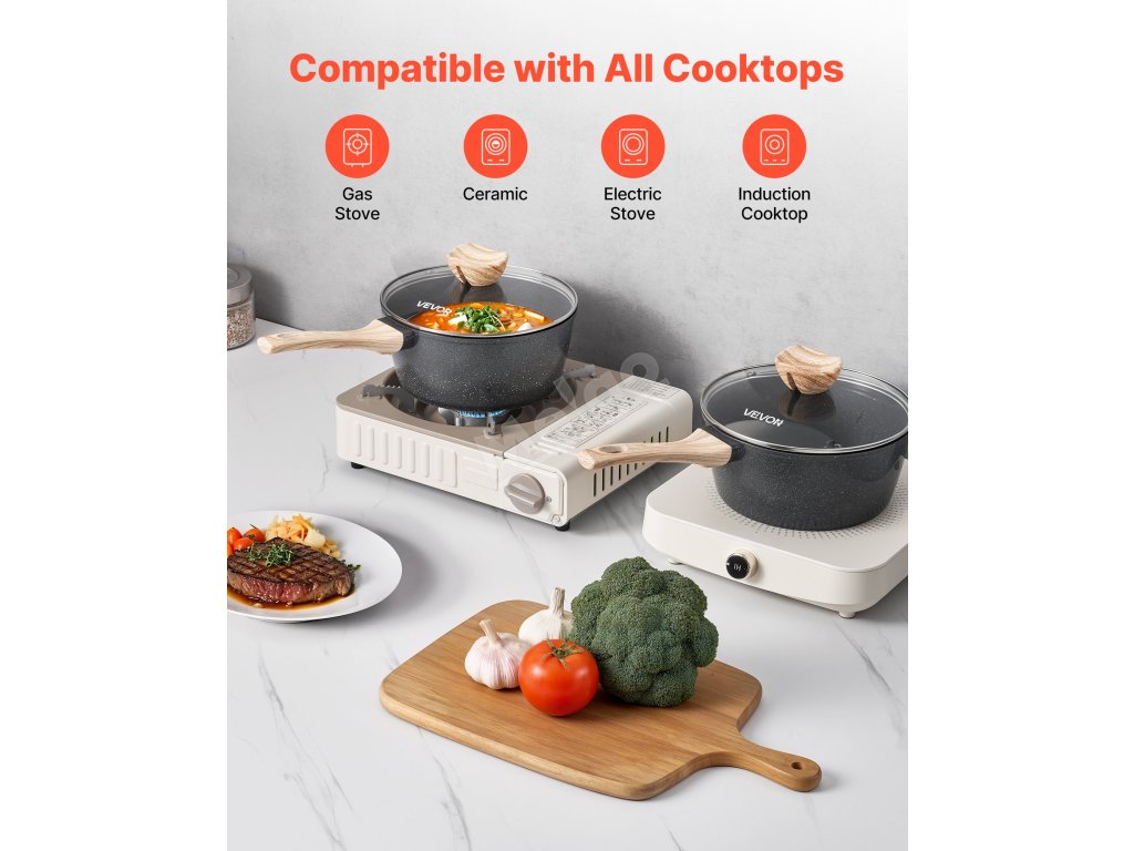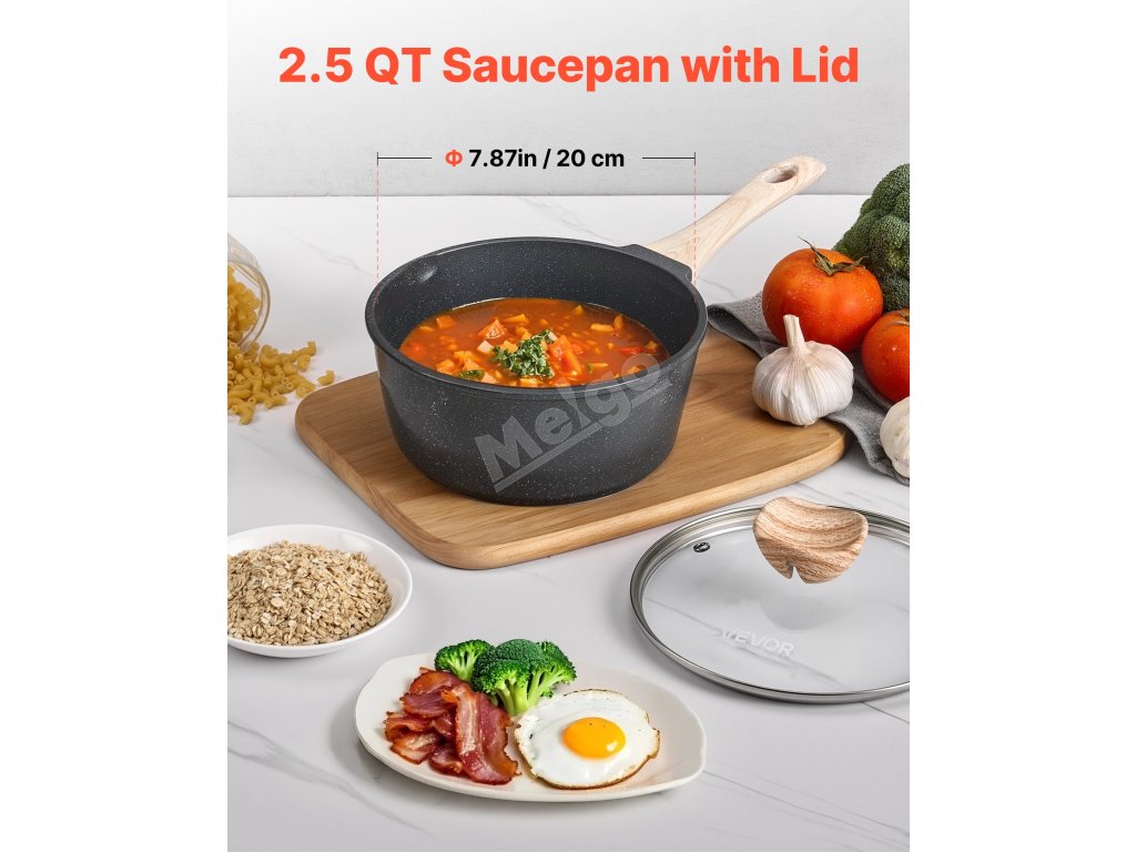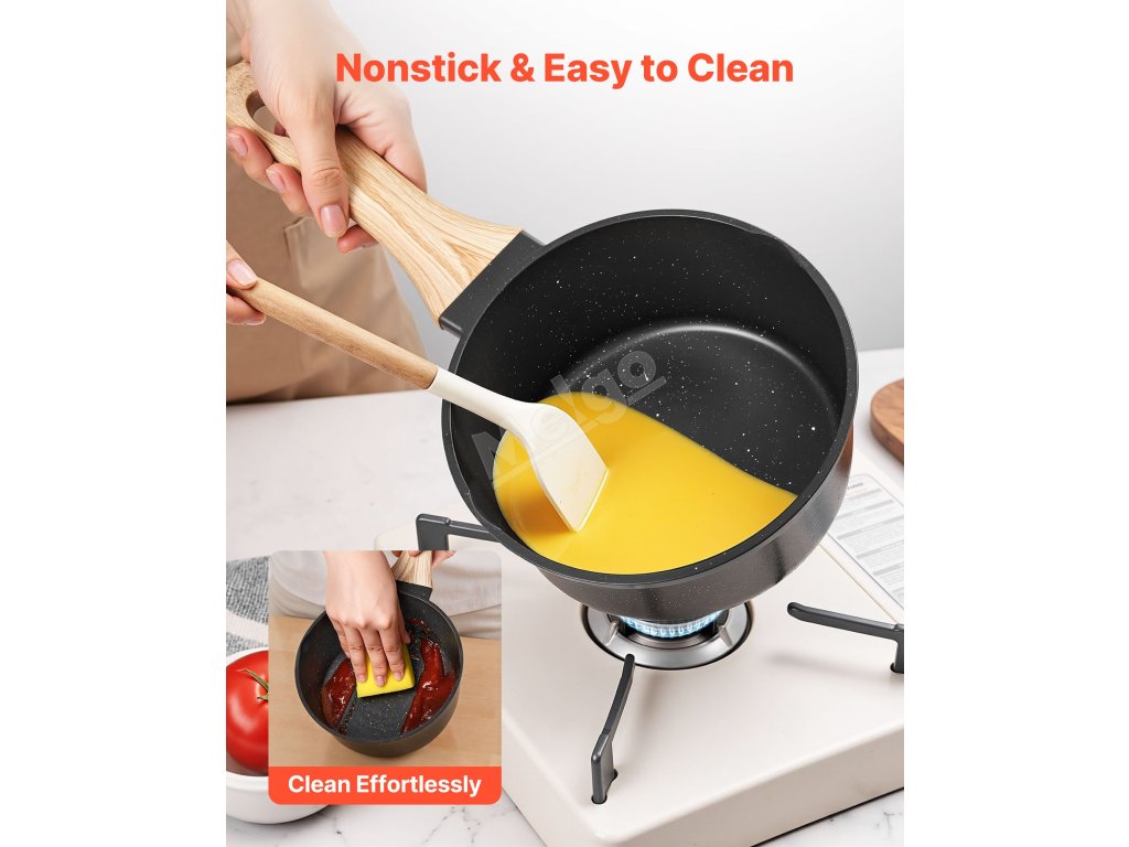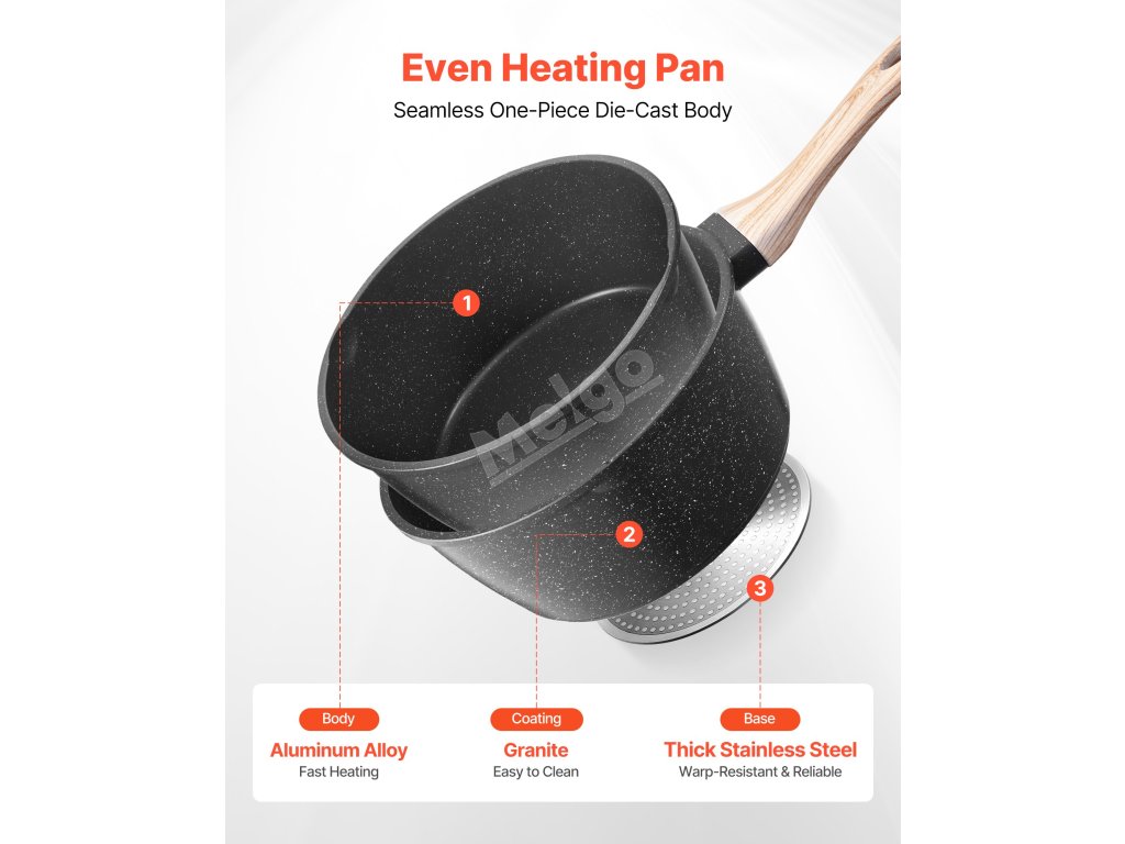 Náš hrnec na omáčku je vybaven mramorovým nepřilnavým povrchem, který umožňuje rovnoměrné vaření bez připalování - i s minimálním množstvím oleje. Ideální pro bezpečné vaření, díky kterému bude každé jídlo chutné.