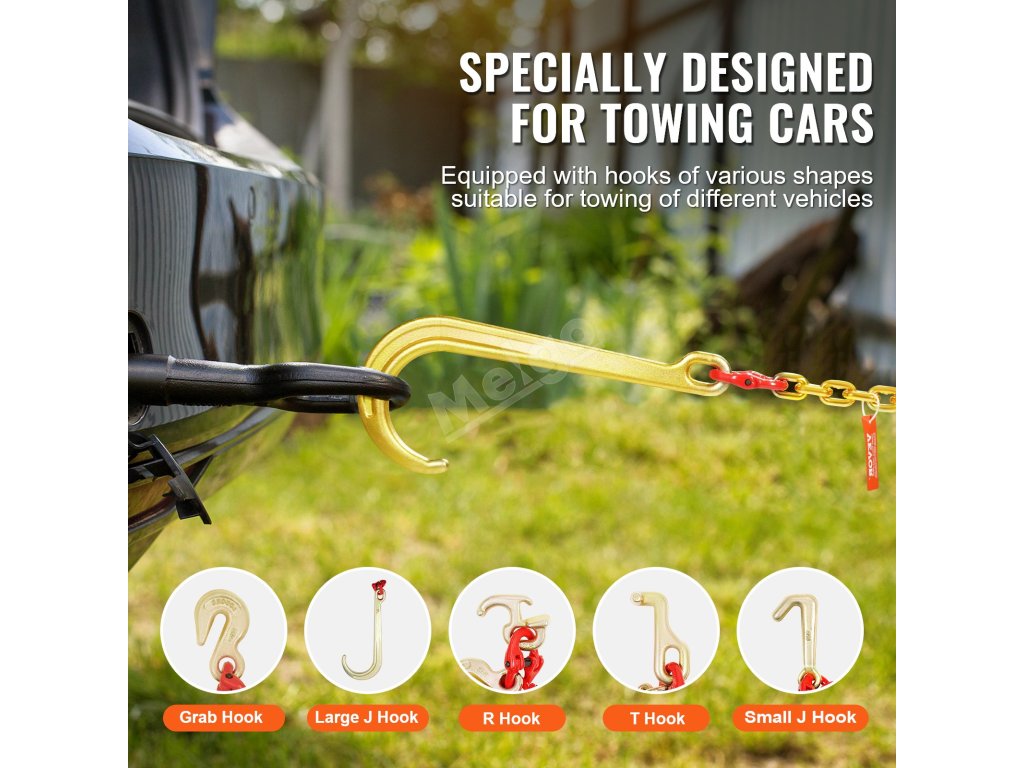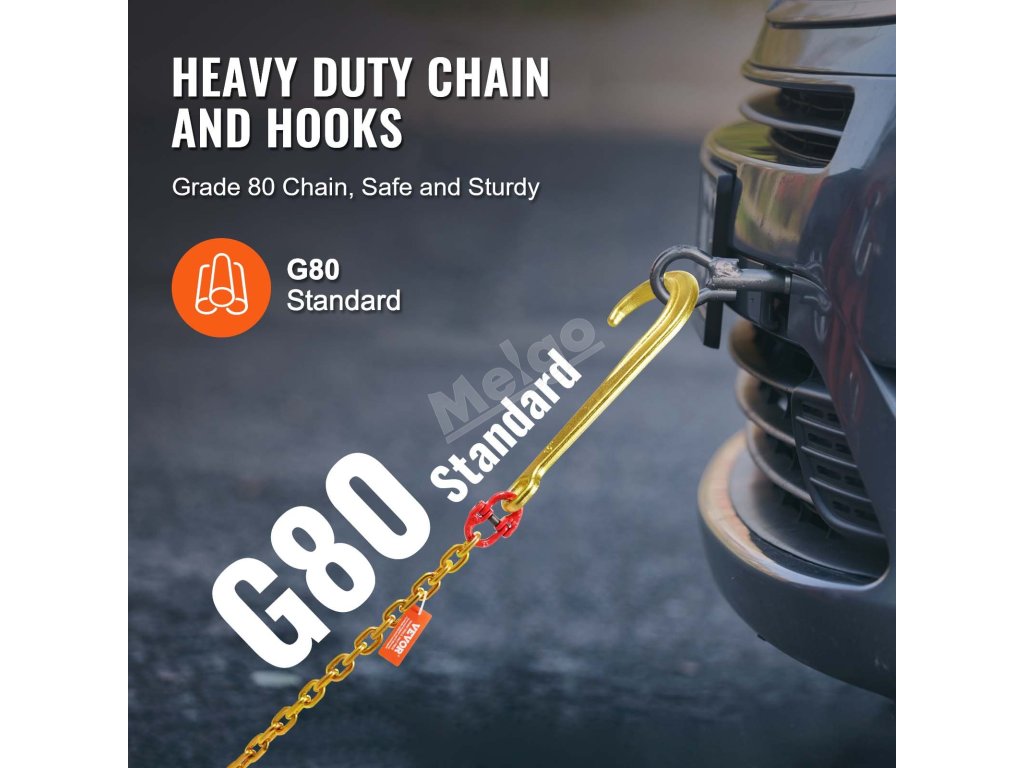 VEVOR, váš exkluzivní odborník na nářadí. Tento řetěz s J-hákem je vyroben z vysoce kvalitní oceli s celkovou pevností 80. stupně. Je také vybaven háky, které se hodí pro různé typy vozidel.