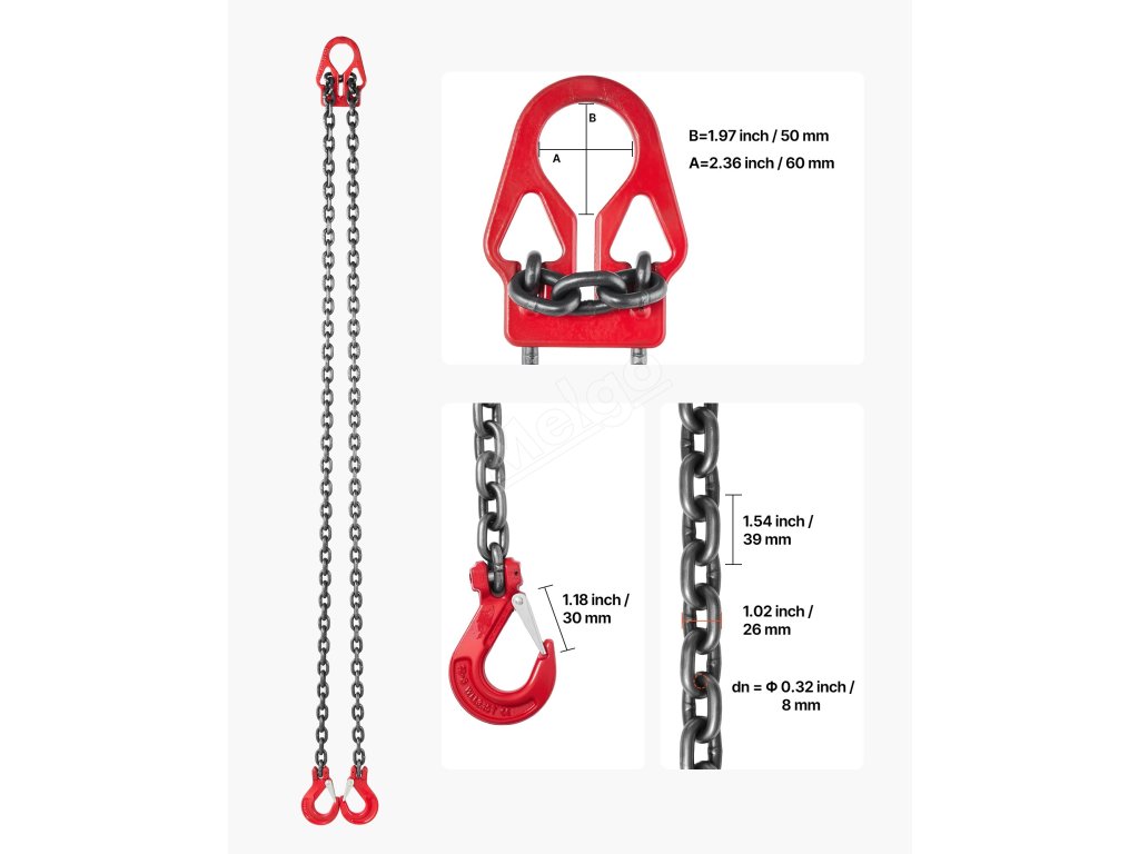 | Max. Pracovné zaťaženie (2-nohý záves) | 7000 lbs (3,17T) |