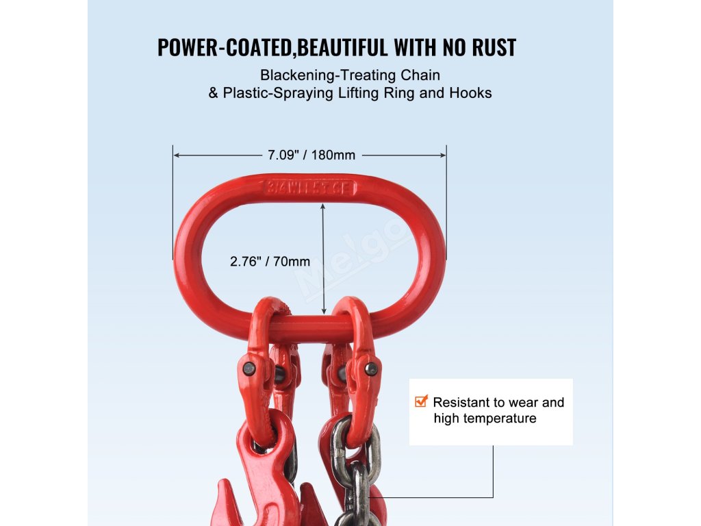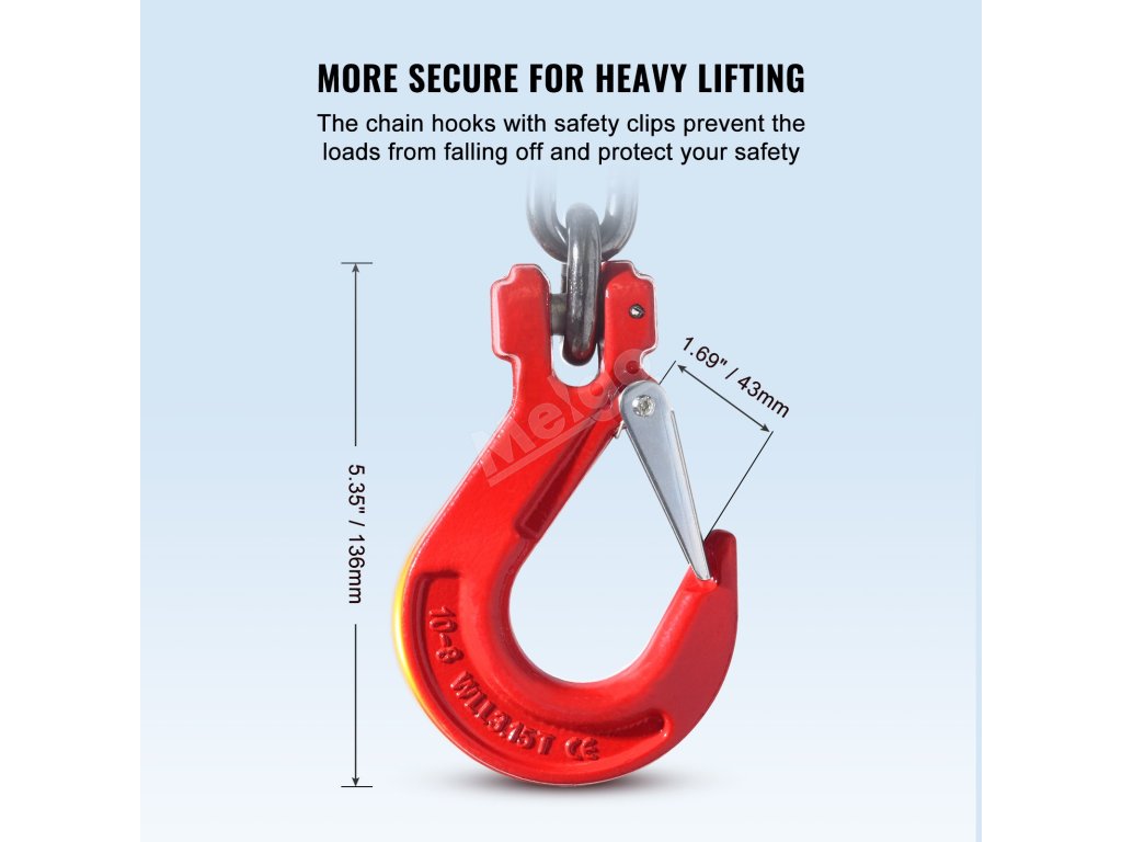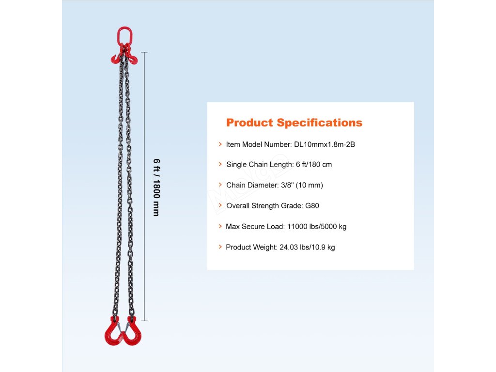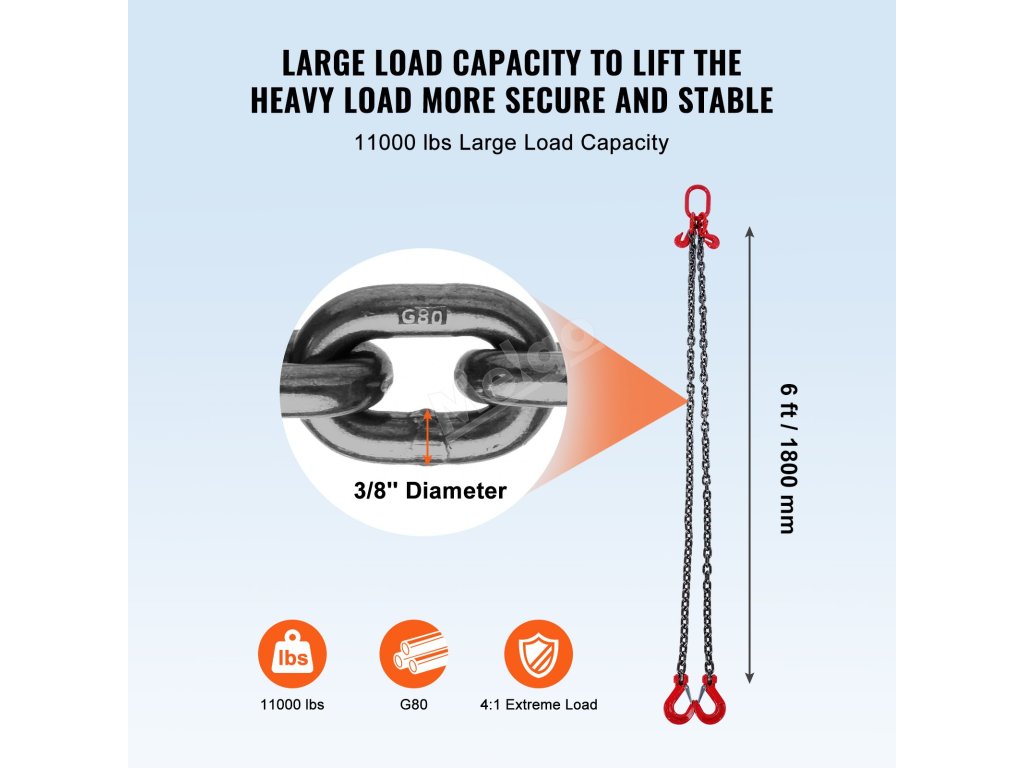 VEVOR, váš exkluzivní odborník na nářadí. Tento řetězový závěs je vyroben z vysoce kvalitní oceli. Má také háčky s pružinovými výstupky pro lepší uchopení a zajištění velkých nákladů.