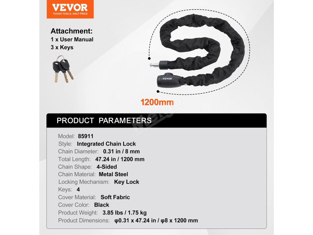 VEVOR Zámek na řetěz kola - váš spolehlivý společník pro bezstarostnou jízdu na kole!