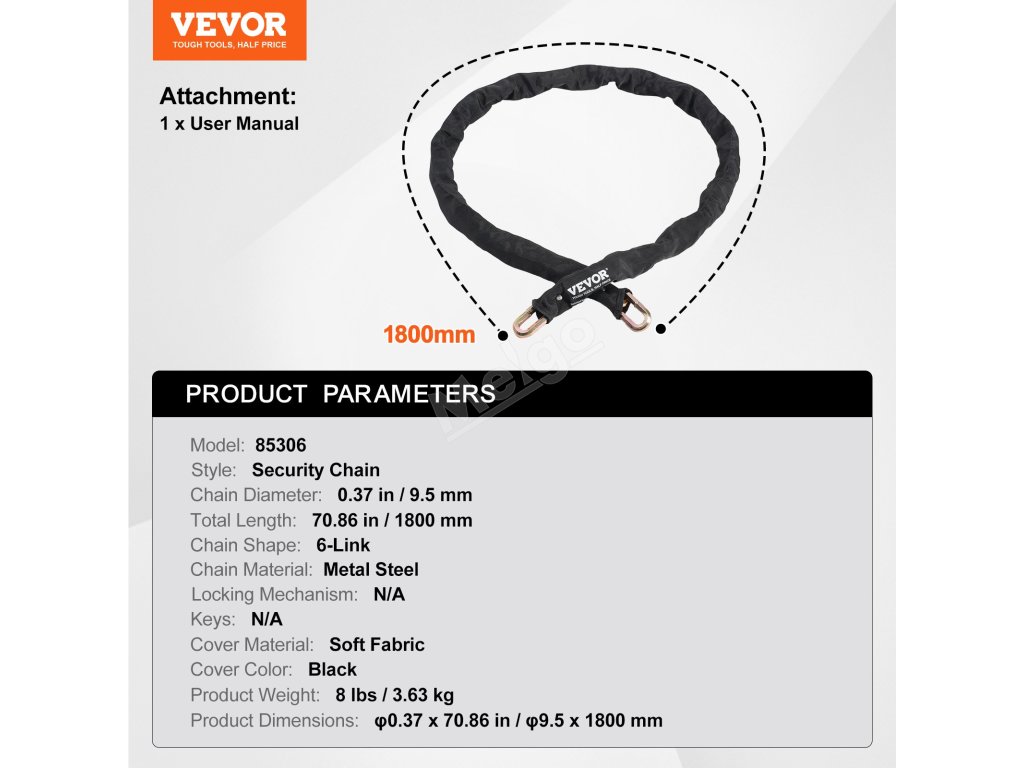 Díky mimořádně dlouhému řetězu 70,86 palce/180 cm jej lze omotat kolem 2 až 3 kol najednou, takže je vhodný pro použití při jízdě s rodinou nebo přáteli.