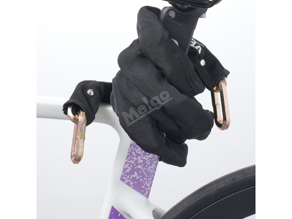 Použití tohoto řetězového zámku na motocykl je snadné; stačí řetěz natáhnout, omotat kolem pevného předmětu a uzamknout.