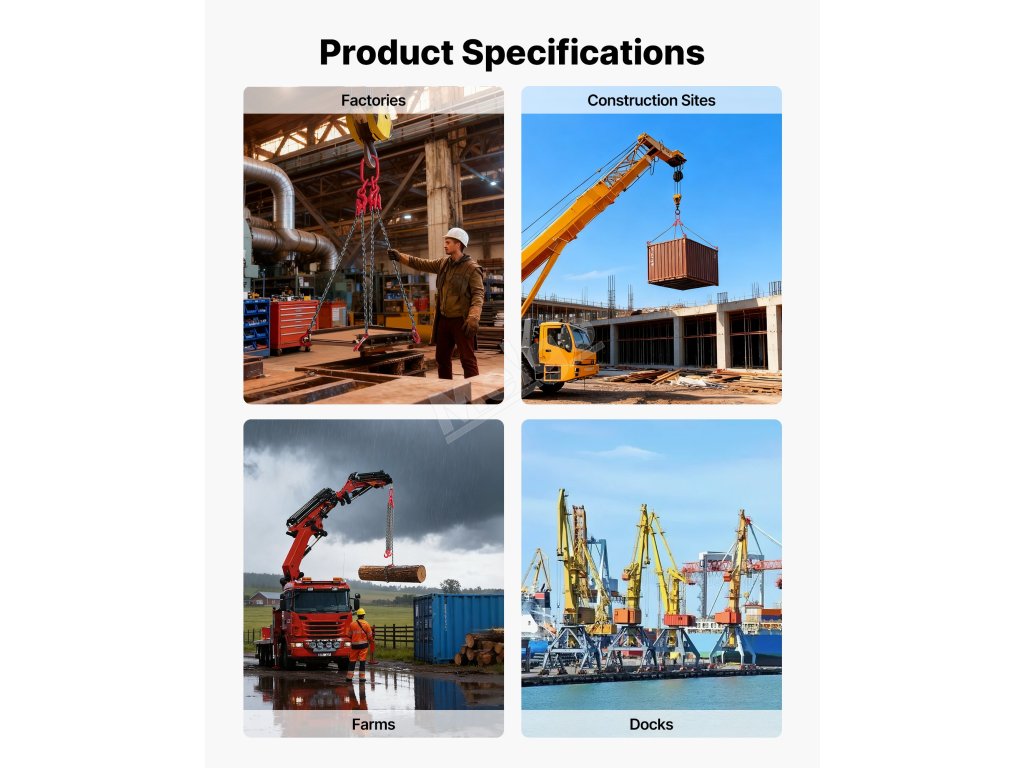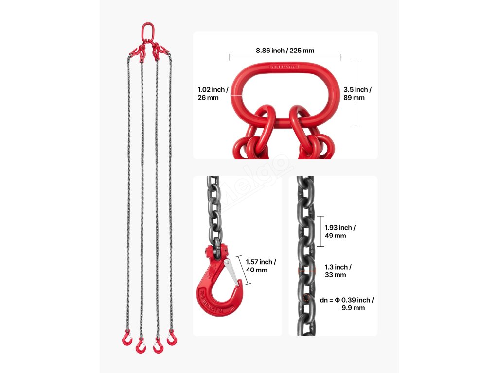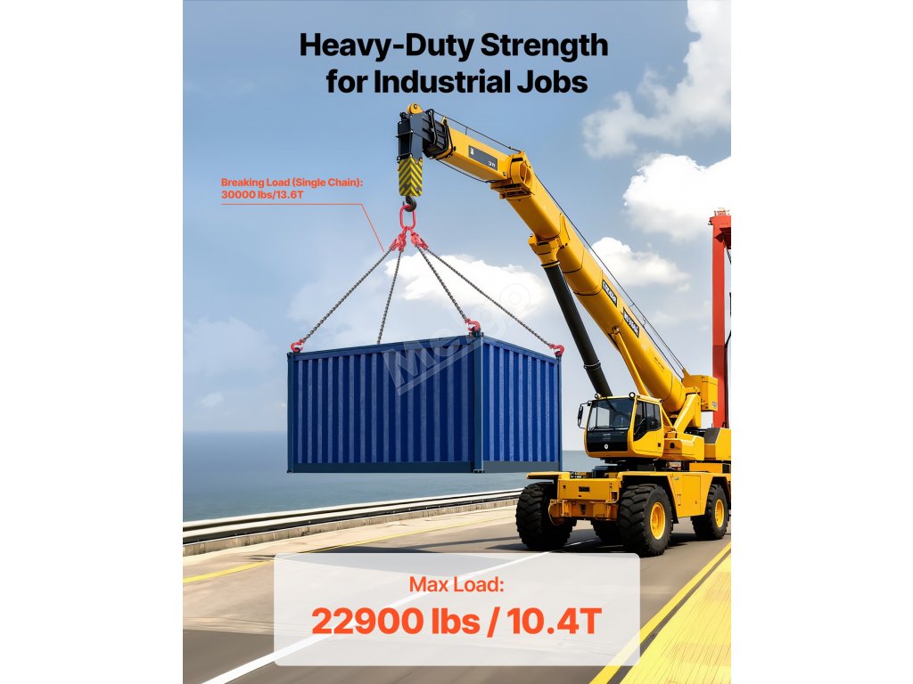 | Max. Pracovné zaťaženie (4-nohý záves) | 22900 libier (10,4 t) |