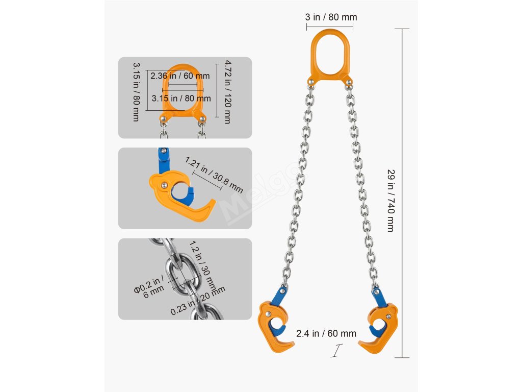 | Max. Pracovné zaťaženie (2-nohý záves) | 2000 lbs (0,9T) |
