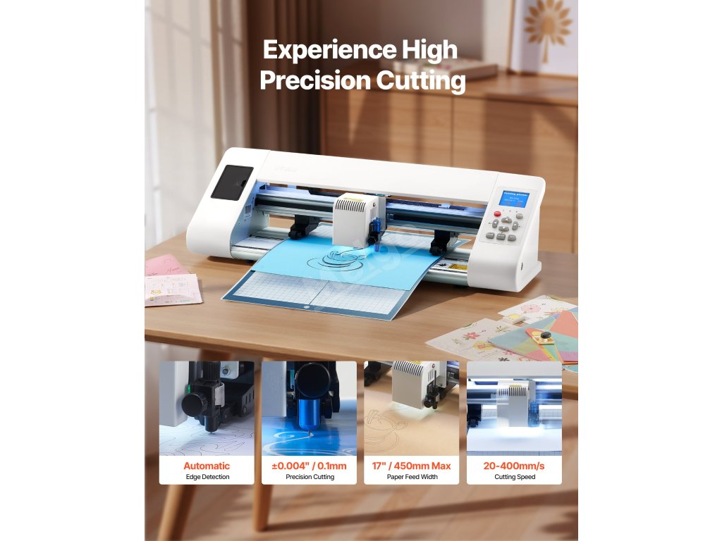 Tento řezací stroj je vybaven vynikající automatickou detekcí hran, takže snadno sleduje obrysy vzorů na materiálech a zajišťuje přesné vyřezání každého detailu. Podporuje více než 100 materiálů včetně samolepicího papíru, pěny EVA, kartonů a dalších, čímž splní všechny vaše kreativní potřeby.