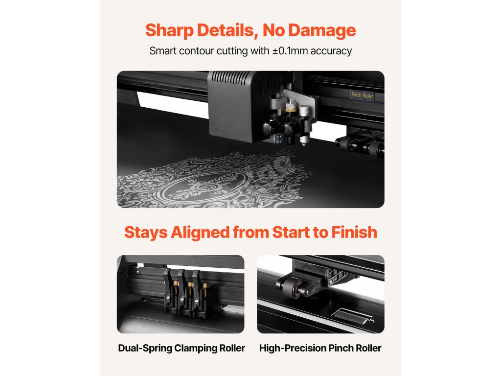 Tento stroj na řezání vinylu má konstrukci se dvěma noži pro vykreslování a řezání bez nutnosti výměny nožů. Je kompatibilní se systémy Windows a Mac. Řeže fólie nebo role o tloušťce až 1 mm s nastavitelnou silou. přesnost ±0,1 mm a detekce obrysů zajišťují stabilní a detailní řezy - snadné i pro začátečníky.