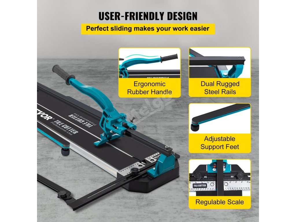 Ruční řezačka na dlaždice je vybavena dvěma protiskluzovými nožičkami, které zajišťují stabilitu při používání a poskytují lepší uživatelský komfort.