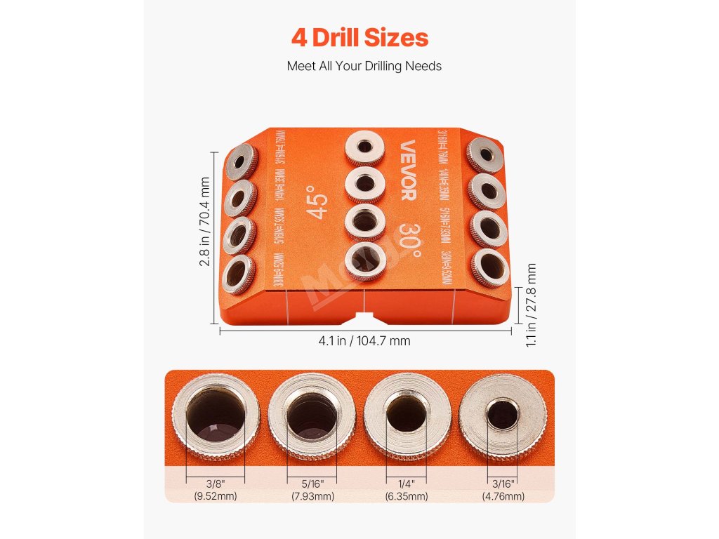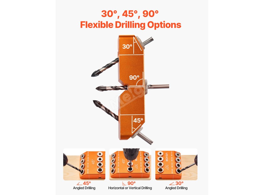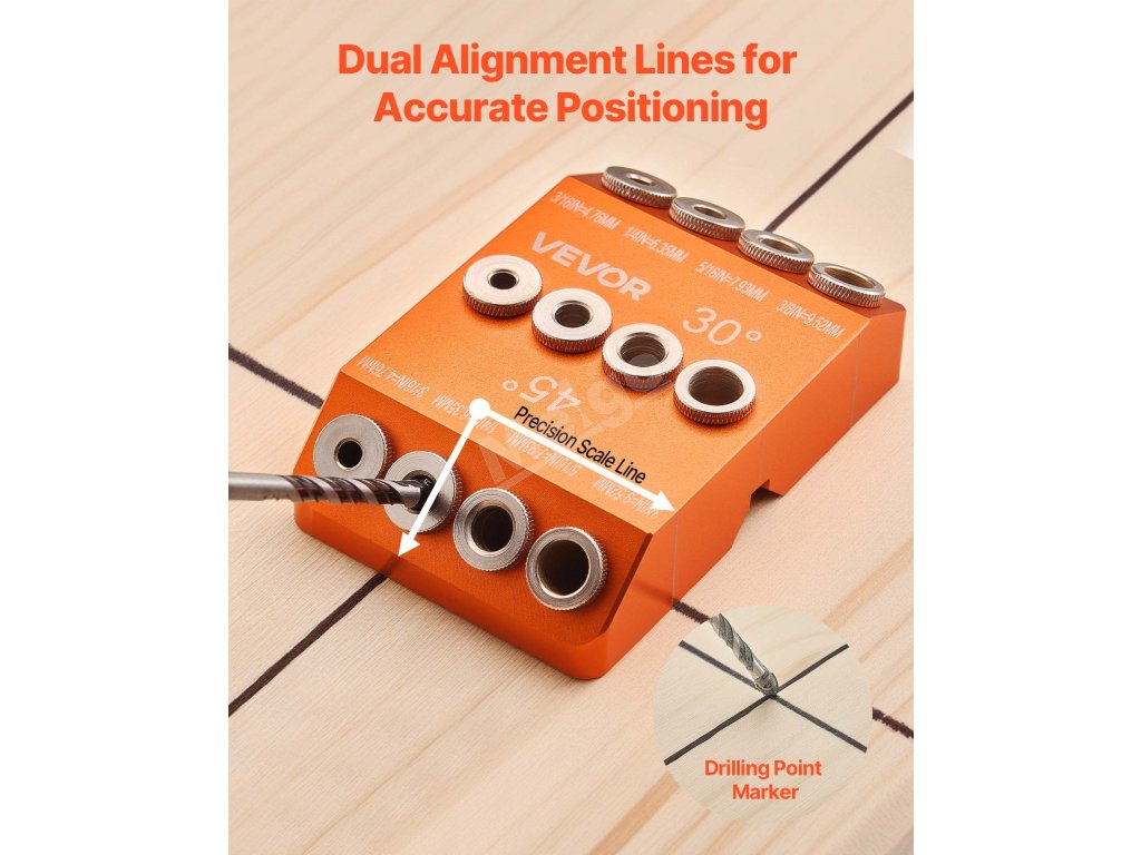 Toto přenosné vrtací vodítko je vybaveno průhlednými stupnicemi s laserovým značením odolným proti opotřebení, které zachovává přesné značení při dlouhodobém používání a zaručuje přesnost i po opakovaných operacích.