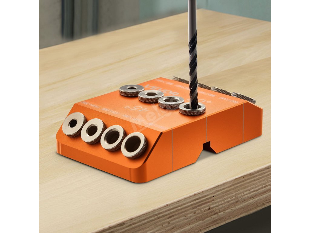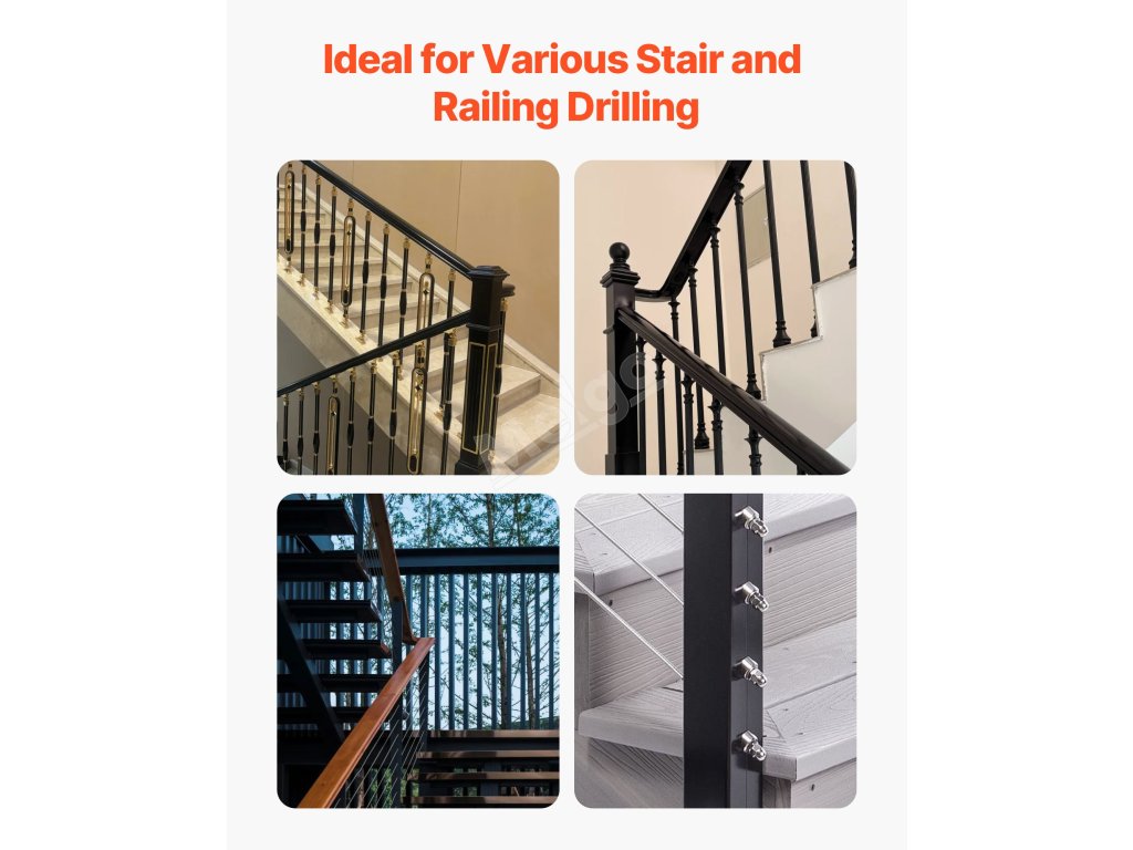 Toto přenosné vrtací vodítko s několika možnostmi nastavení úhlu je ideální pro instalaci zábradlí a plotů a zajišťuje přesné zarovnání v různých materiálech, jako je dřevo, kov a plast.
