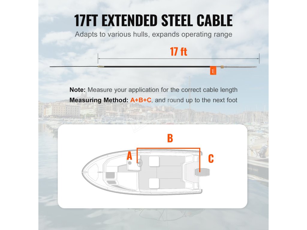 Naše 17stopé kormidelní lano pro čluny se vejde i do větších trupů, takže nabízí větší flexibilitu v uspořádání kabiny a větší manévrovací prostor pro piloty. Tím se snižují omezení způsobená kratšími kabely, což usnadňuje řízení.