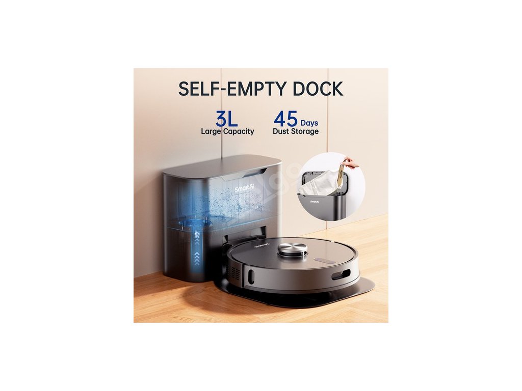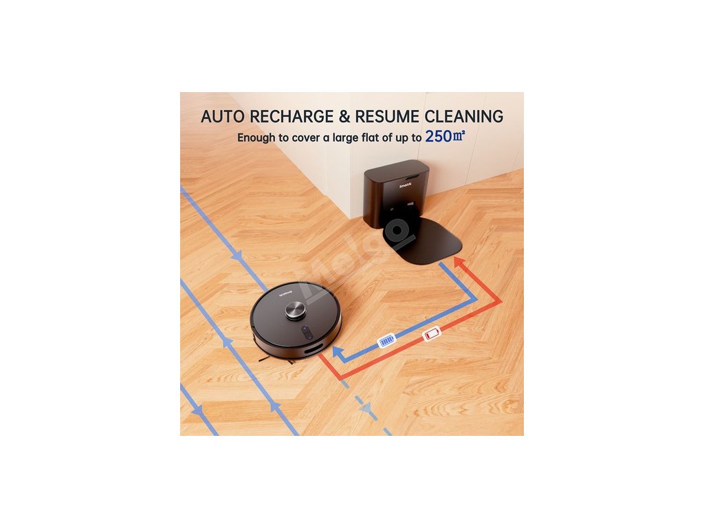 Po každém úklidu se robotický vysavač S8 Pro automaticky vrátí do základní stanice 3L, kde výkonný sací výkon přesně vysaje nasbíraný prach. Robotický úklid je dokončen za pouhých 20 sekund, což minimalizuje rušení a optimalizuje dobu úklidu. Účinný sběrný koš s cestou cirkulace vzduchu zachycuje prach a pachy bez ucpání. Kapacita zásobníku na prach vydrží více než 45 dní, takže zásobník lze snadno vyměnit bez každodenního kontaktu s prachem a opětovného znečištění.
