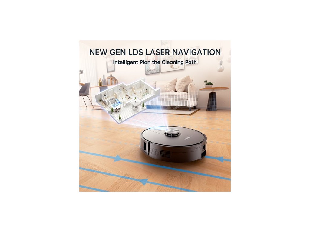 Pokročilé senzory vykreslují mapy rychle a přesně, ochranné podložky zabraňují kolizím, inteligentní plánování trasy a vyhýbání se překážkám a senzory propasti zabraňují pádům; možnost dvojitého čištění využívá šachovnicový vzor, který neponechává žádné úkryty pro prach.