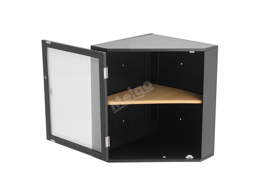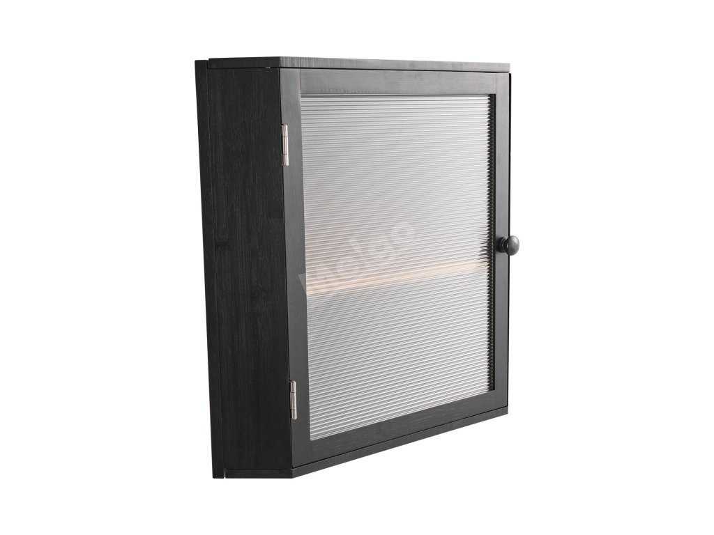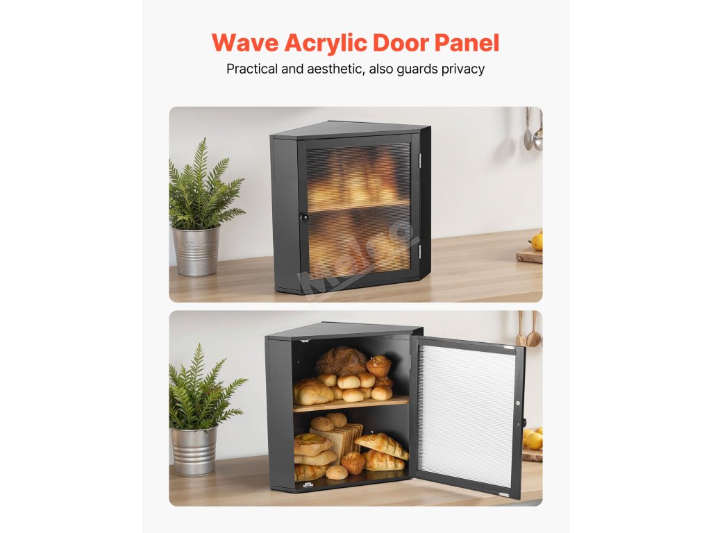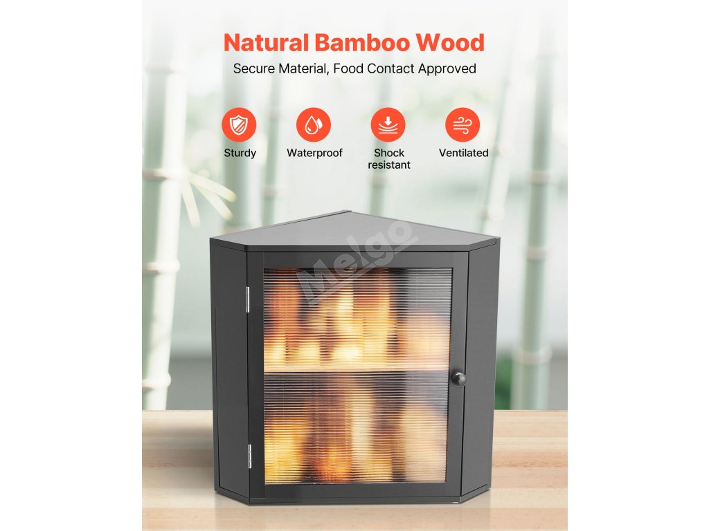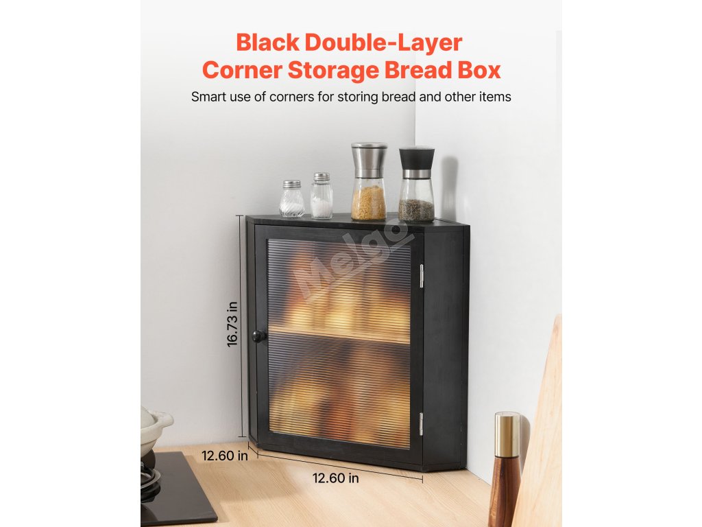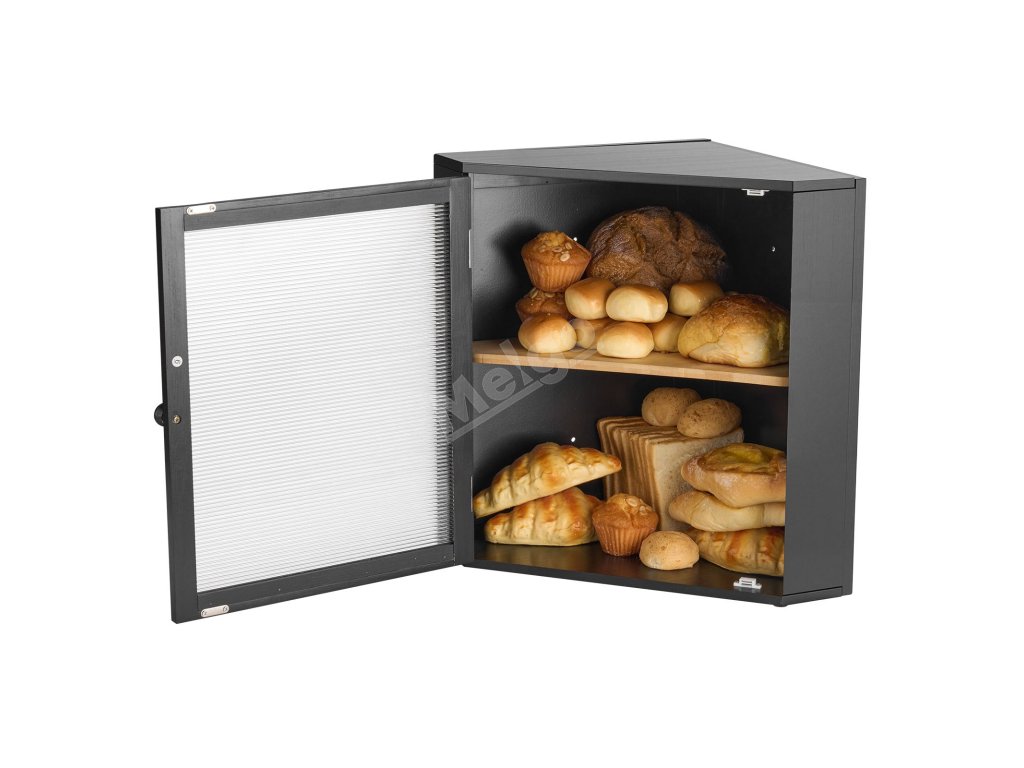 Rohový chlebník z bambusu, dvouvrstvý, akrylové vlnité dveře, černý