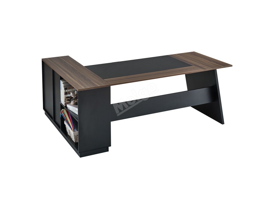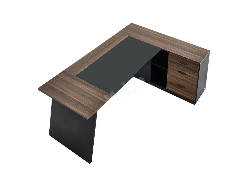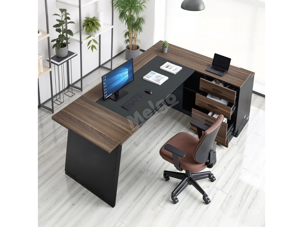 Manažerský stůl ve tvaru písmene L kombinuje silnou dřevěnou desku s pevnou dřevotřískovou základnou. Snadno se na něj vejdou počítače, tiskárny a další kancelářské vybavení, což zajišťuje trvalou stabilitu a zároveň zabraňuje viklání i při dlouhodobém používání.