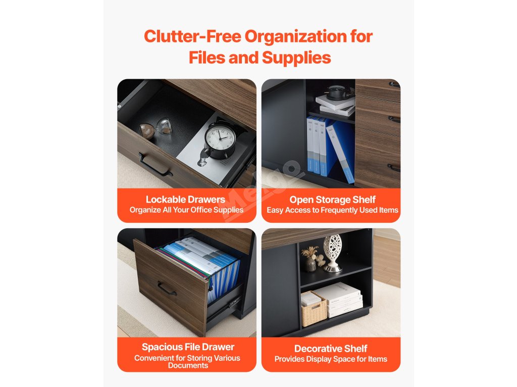 Tento manažerský stůl s několika zásuvkami a úložnými přihrádkami vám umožní udržovat pořádek ve složkách a kancelářských potřebách. Stůl je vyroben z odolné dřevotřískové desky a zůstává stabilní pro dlouhodobé používání, takže je ideálním řešením pro vaši pracovnu nebo domácí kancelář.