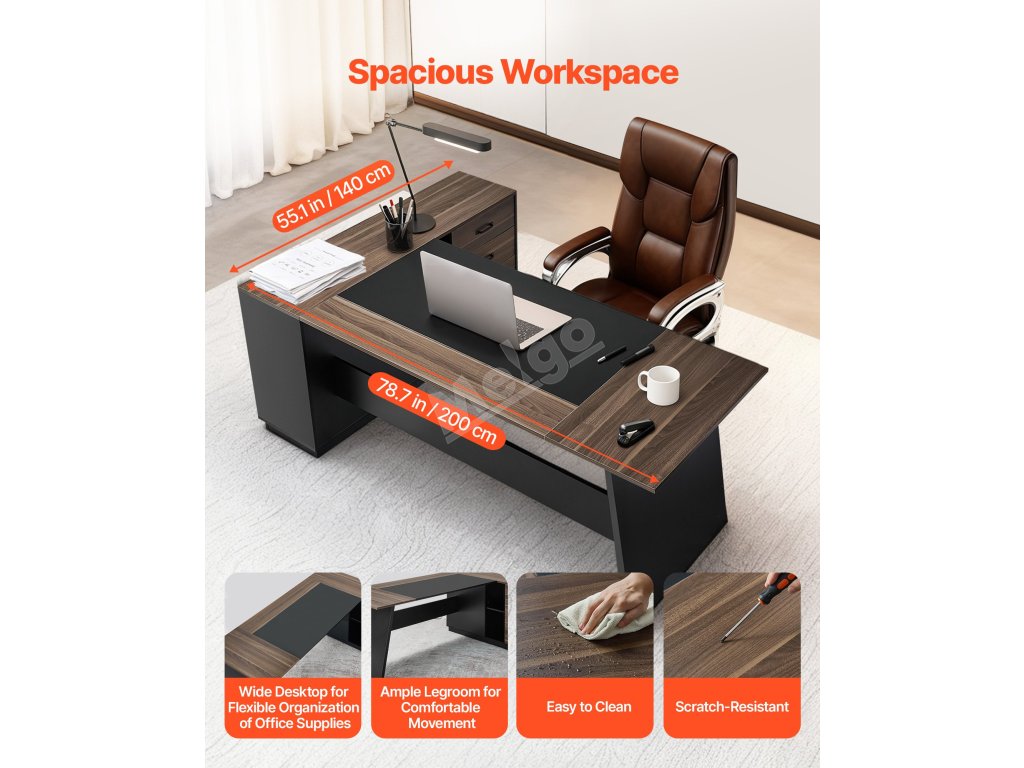 Tento manažerský stůl ve tvaru písmene L má velkou pracovní plochu, která poskytuje dostatek prostoru pro všechny vaše kancelářské potřeby. Velkorysý prostor pro nohy umožňuje snadný pohyb nohou, což snižuje únavu během dlouhých hodin práce a zajišťuje pohodlnou práci.