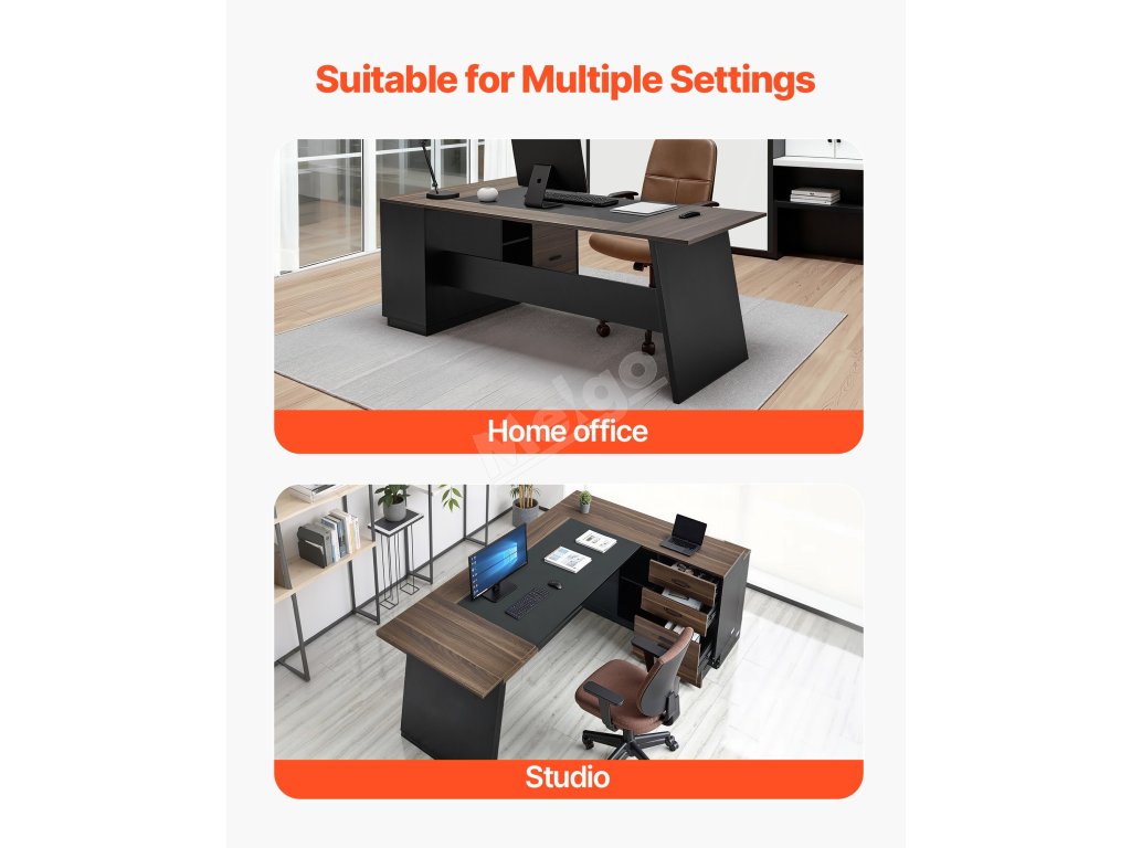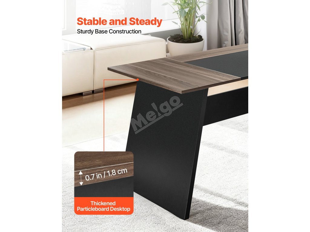 Tento velký stůl ve tvaru písmene L slouží jako počítačový stůl, kancelářský stůl, konferenční stůl, herní stůl nebo jídelní stůl. Jeho jednoduchý, přizpůsobivý design se hodí k různým stylům interiéru, takže je ideální pro domácí i kancelářské použití.