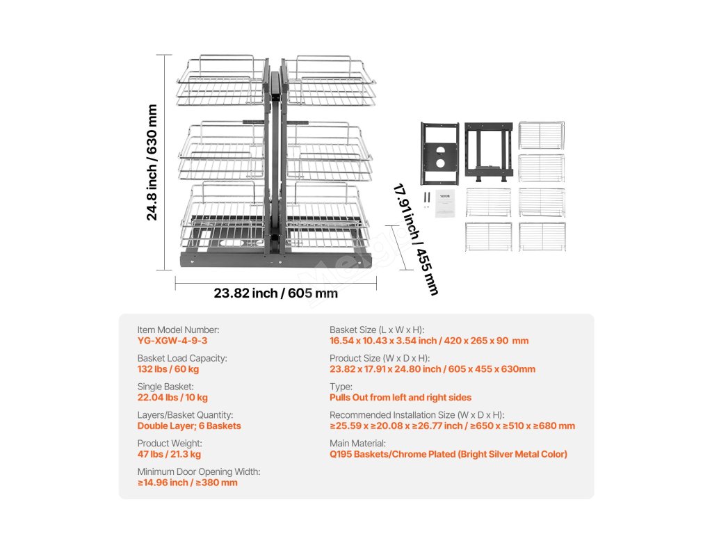 Tento výsuvný koš je vybaven 6 velkokapacitními koši, které umožňují rychlé vyhledávání položek díky efektivní kategorizaci, čímž zcela řeší problémy s omezeným prostorem v kuchyni a nepořádkem.