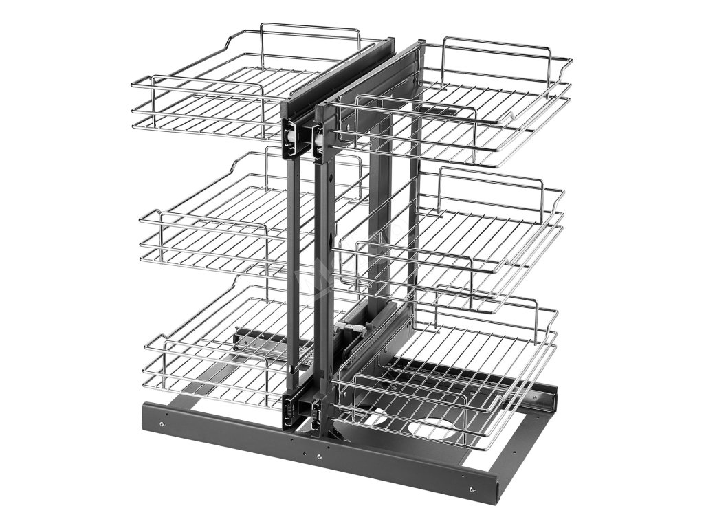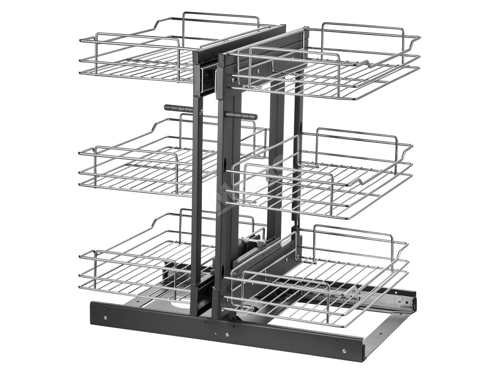 Otočný koš je vyroben z vysoce kvalitního rámu z uhlíkové oceli, je pevný a odolný, má velkou nosnost a bezpečně pojme těžké hrnce a velké nádobí. Chromování splňuje normu 8. stupně odolnosti proti korozi, takže police na lenošky zůstane dlouho lesklá a nová.
