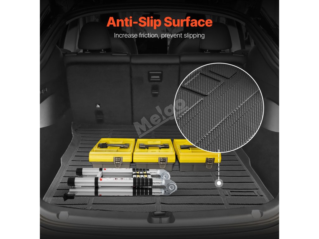 Vďaka protišmykovému povrchu udrží naša rohož do kufra váš náklad na mieste aj pri ostrých zákrutách alebo nerovnostiach na ceste. Váš náklad zostane v bezpečí, čím sa znižuje riziko poškodenia.