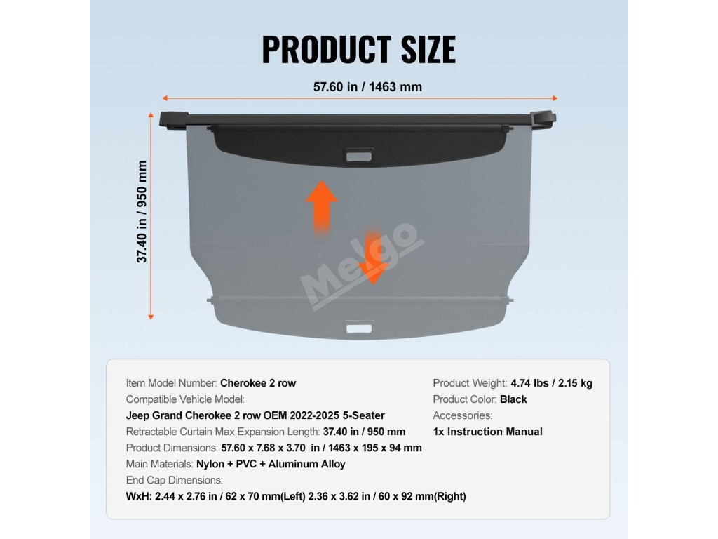 Roleta do kufru, vodotěsná, pro 2řadové 2022-2025, hliník a pvc