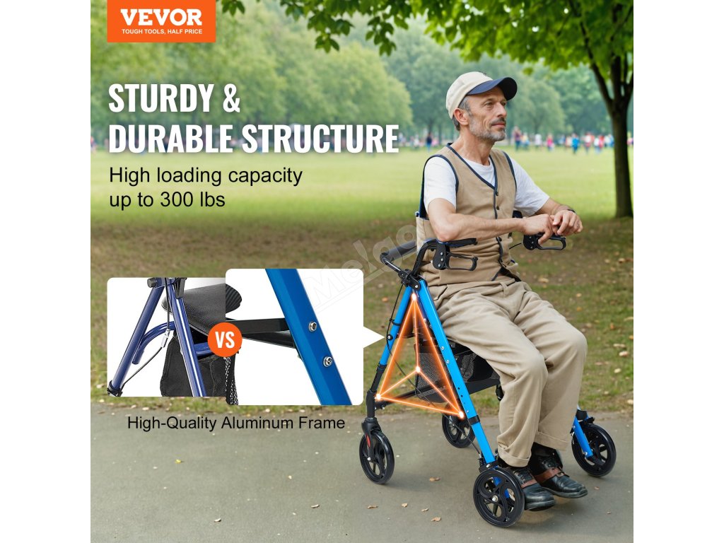 Vychutnejte si maximální mobilitu a pohodlí s těžkým pojízdným chodítkem pro seniory VEVOR. Díky vysoce kvalitnímu hliníkovému rámu, nosnosti 300 kg, nastavitelné rukojeti, skládací konstrukci a protiskluzovým kolečkům je dokonalým společníkem pro venkovní dobrodružství a aktivní životní styl.