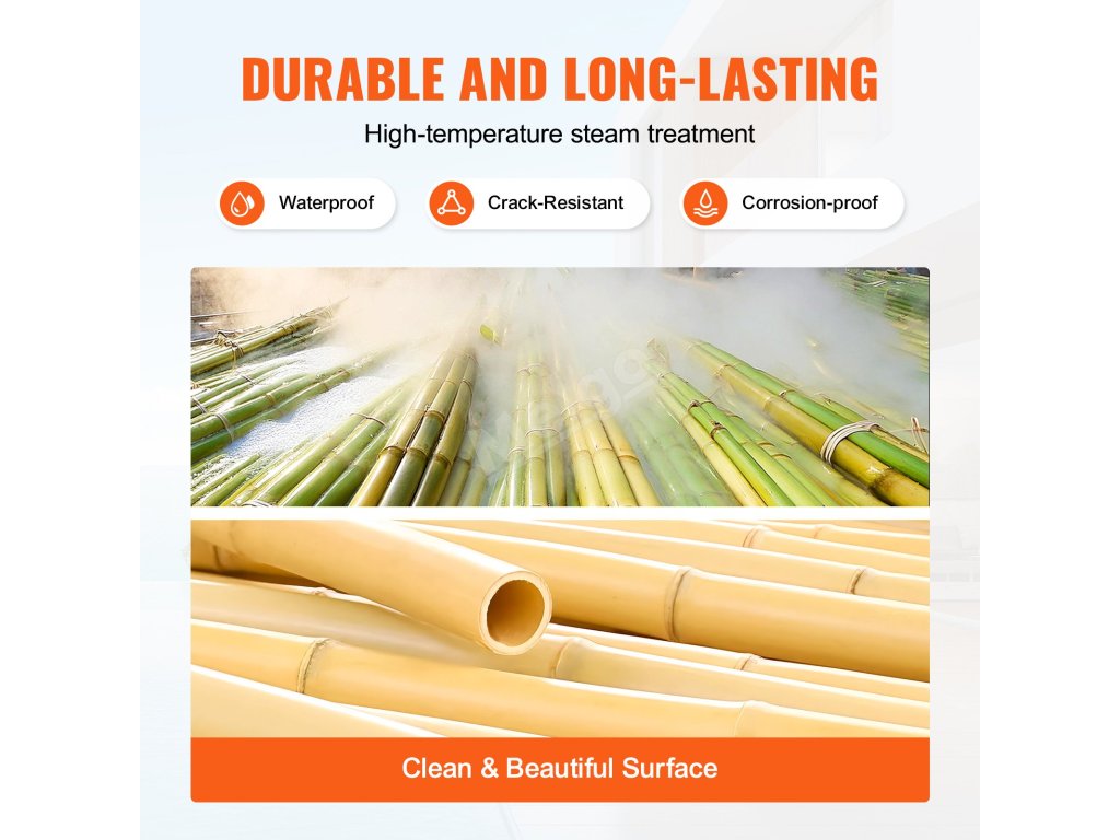 Každá bambusová tyč prochází tradiční úpravou, která zahrnuje napařování při vysoké teplotě, praní a přírodní sušení. Bambusový plot je spojen silnými pozinkovanými ocelovými dráty, je odolný proti korozi a má pevnou konstrukci, což prodlužuje jeho životnost.