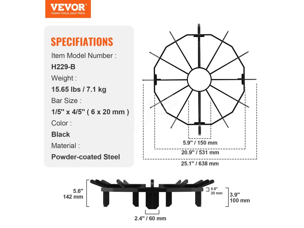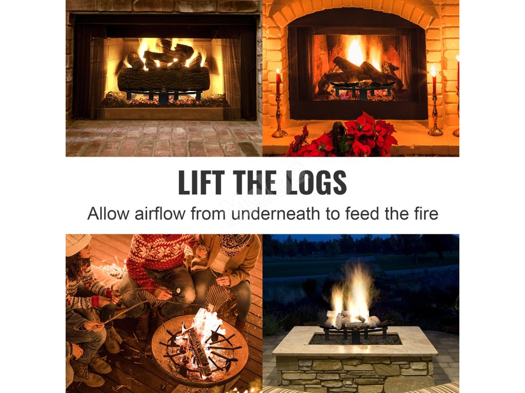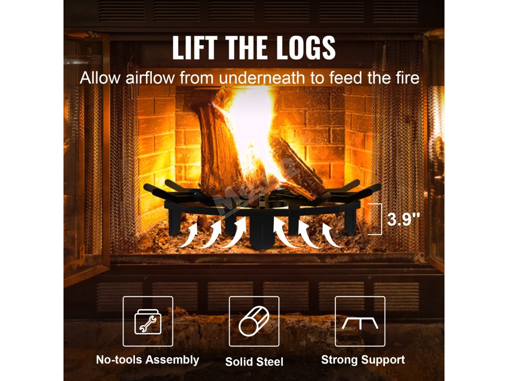 Rošt na polena 27 inch, 6 podpěr, práškované ocelové tyče, do krbu