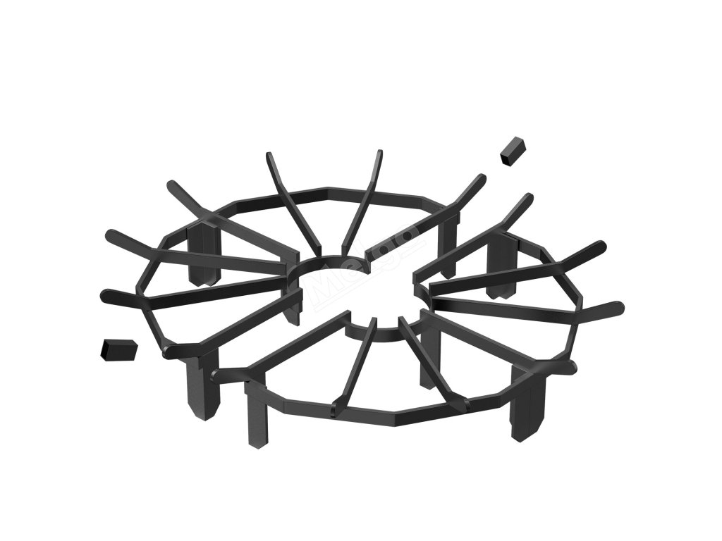Zvýšená konstrukce roštu na dřevo, podepřená 6 ocelovými nohami, umožňuje optimální proudění vzduchu pod poleny. Lepší proudění vzduchu také pomáhá snižovat tvorbu kouře a zvyšuje tepelný výkon.