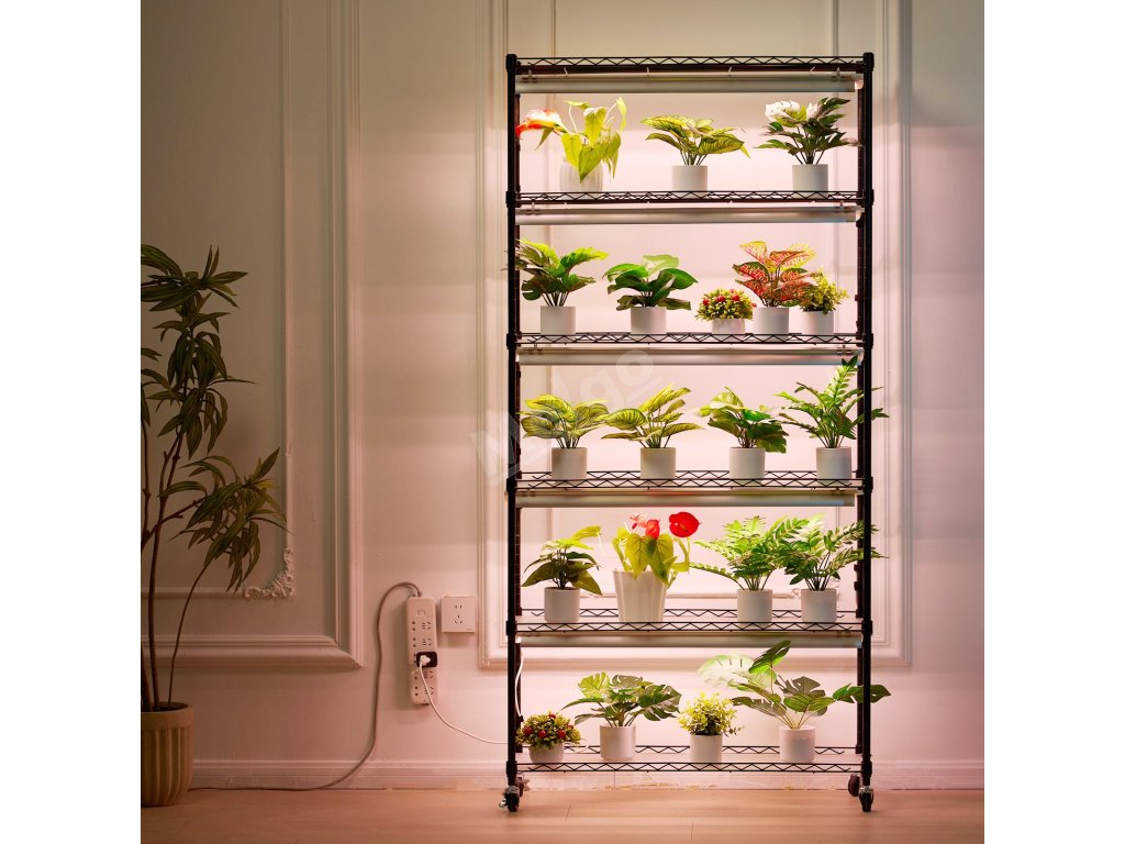 Tento robustní stojan na rostliny je vybaven 150W LED panely s plným spektrem 400-780 nm. Je vyroben z oceli s vysokou hustotou pro odolnost proti rzi a oxidaci a má rozměry 35,43 x 13,78 x 70,87 palce. Má 6 polic a celkovou nosnost 360 kg, což vám umožní vystavit více rostlin.