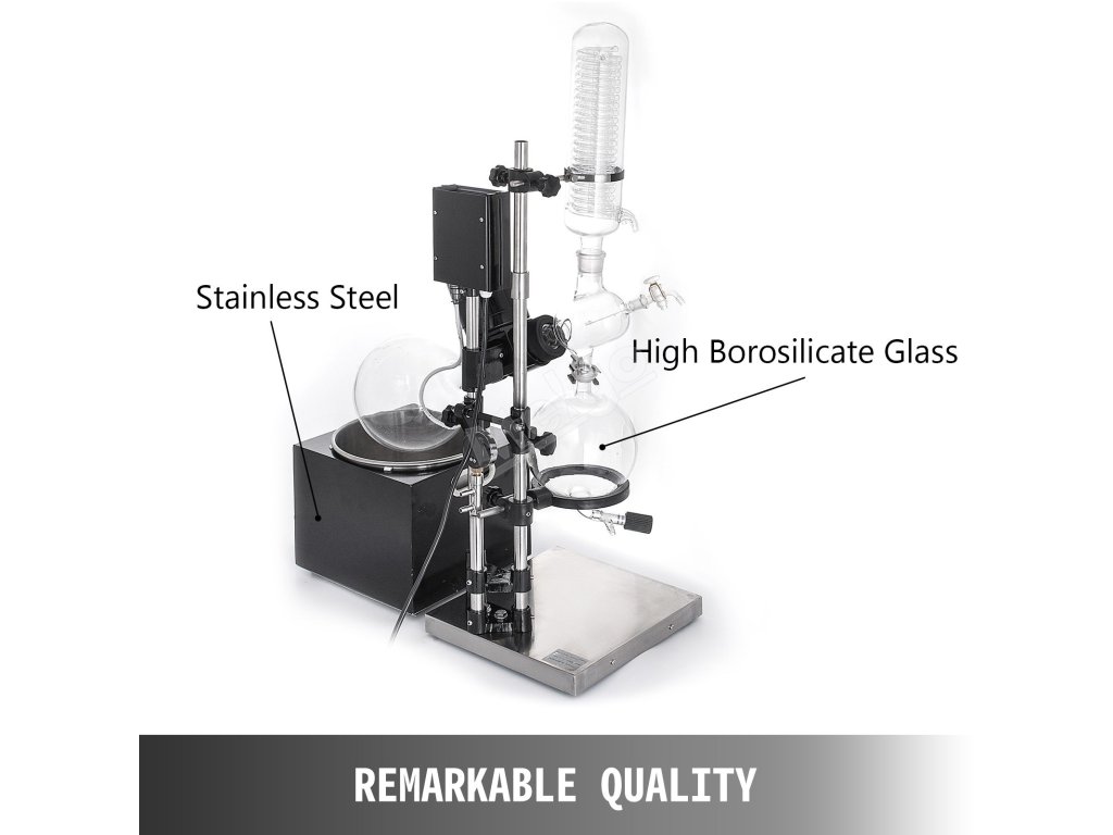 Tato rotační výparníková jednotka má krásný vzhled a jemné řemeslné zpracování. Mechanická konstrukce je vyrobena z nerezové oceli a hliníkové slitiny. Všechny skleněné součásti jsou vyrobeny z vysoce kvalitního borosilikátového skla.