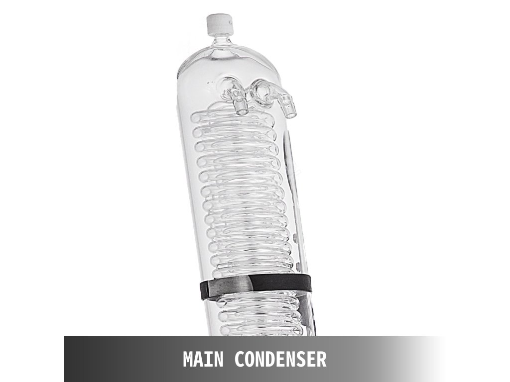 U rotačního výparníku s kondenzátorem se používá hadicový kondenzátor. Zajišťuje výraznější kondenzaci a vyšší účinnost destilace ve srovnání s jinými malými rotačními odparníky na trhu.