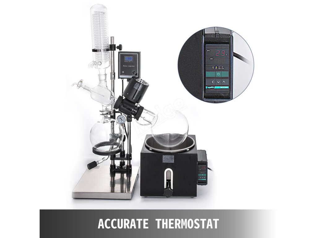 Digitální termostat na vodní lázni může zobrazovat aktuální teplotu soupravy rotační výparky. Teplotu můžete zvýšit nebo snížit podle aktuální situace.