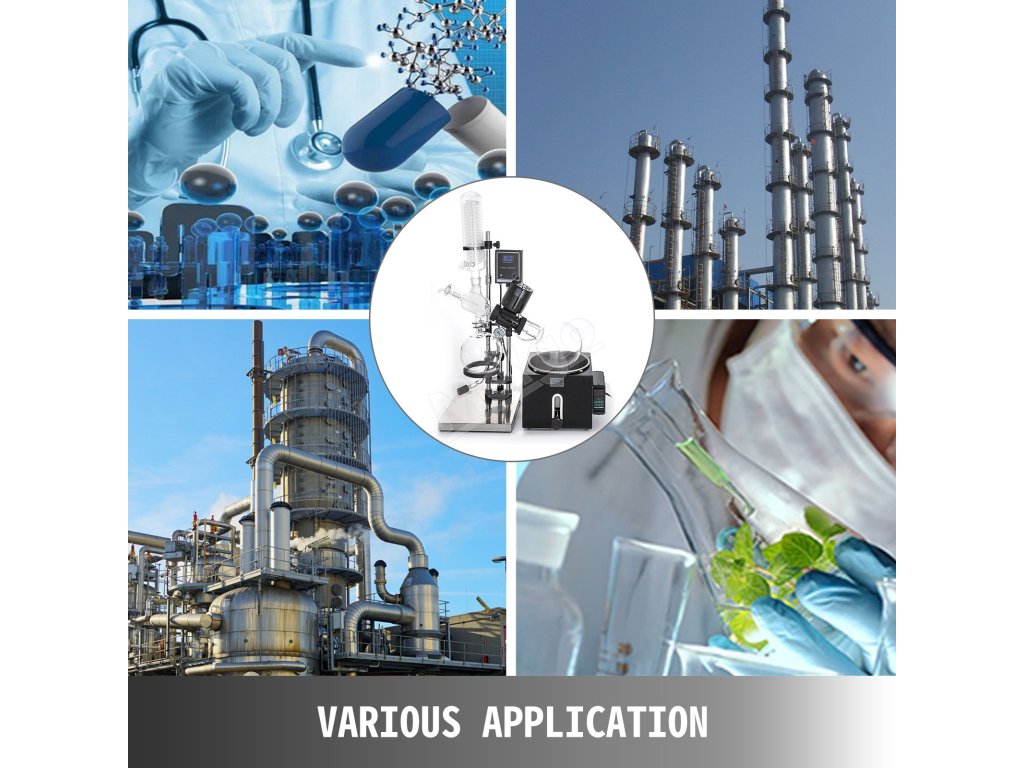 Rotační odparka je nepostradatelným nástrojem v procesech odpařování, koncentrace, krystalizace, sušení, separace a získávání uhlí. Je široce používána ve vědeckém výzkumu ve farmaceutickém, chemickém a biologickém průmyslu.