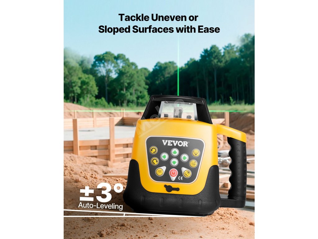 Ve spojení s laserovým detektorem a dálkovým ovládáním dosahuje maximální vzdálenosti 65 stop a podporuje vertikální i horizontální montáž pro všestranné použití laserových vodováh.