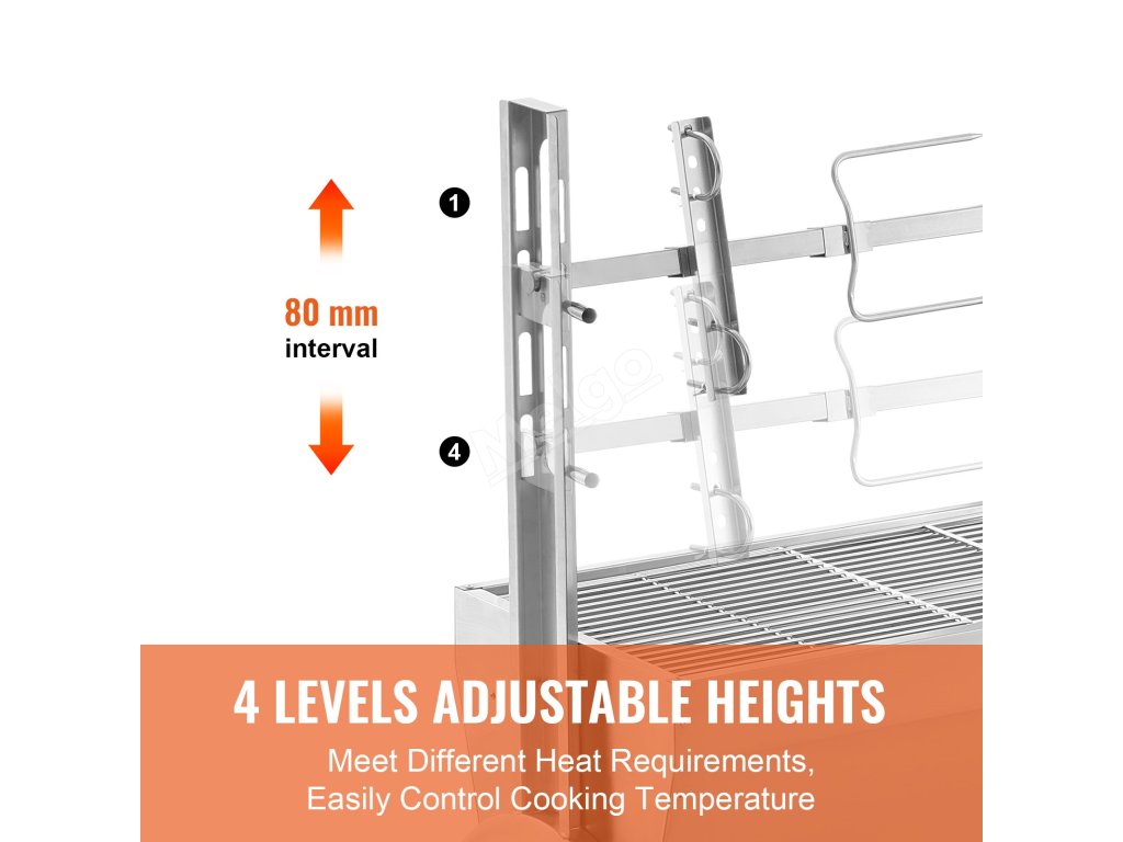 Gril je vyroben z odolné nerezové oceli, odolává vysokým teplotám a snadno se udržuje a čistí. Součástí grilu je rožnící tyč, která poskytuje dostatek prostoru pro vaše potraviny. Snadno se čistí a zajišťuje, že můžete bez námahy udržovat hygienické prostředí pro vaření.