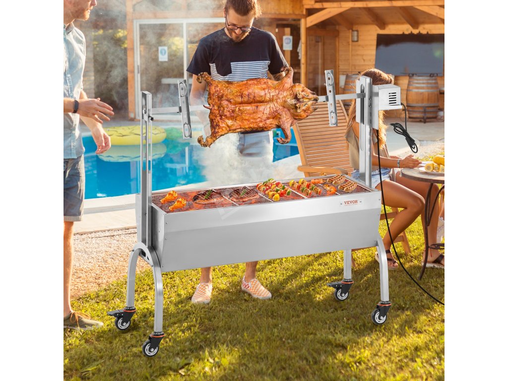 Náš elektrický rožeň je ideální pro pečení kýty, bůčku a celých kuřat, prasat, koz, jehňat, krůt a dalších zvířat. Vhodné pro použití v domácnostech, letoviscích, BBQ barech, restauracích a při kempování. Ideální pro různé typy půdy.