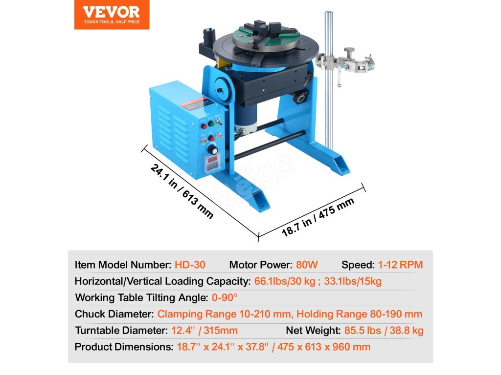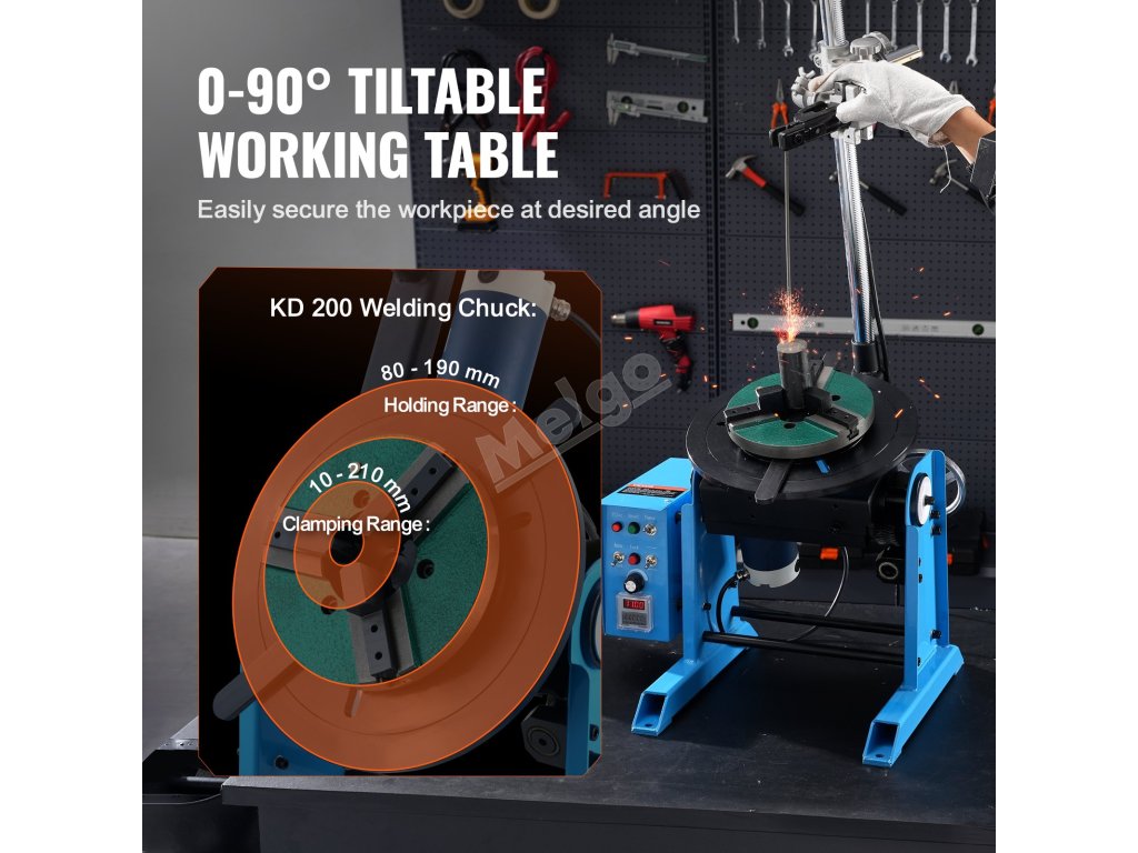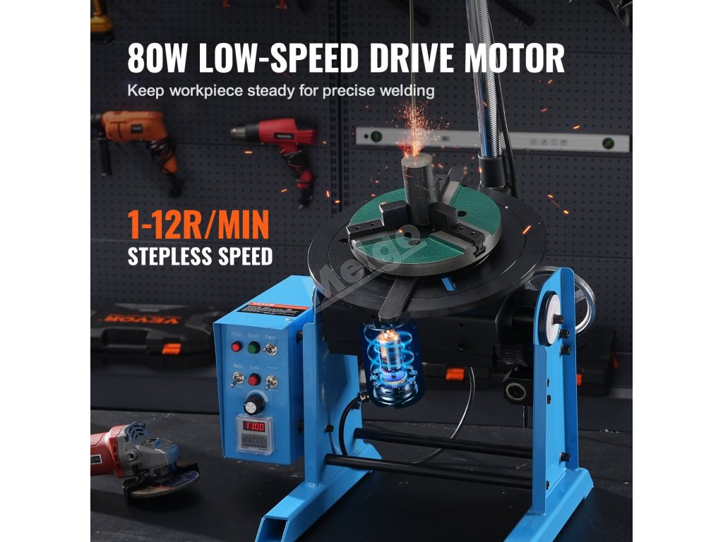 Rotační svařovací polohovač 30kg 0–90° 1–12 rpm 3-čelisťový sklíčák