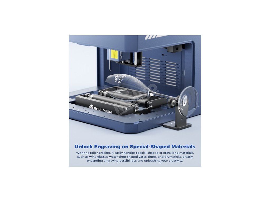 Mini válec Sculpfun RA využívá posuvné nastavení vzdálenosti hřídele, které se fixuje ručním otáčením otočného knoflíku, což umožňuje flexibilnější nastavení a rychlejší provoz pro splnění požadavků na gravírování různých průměrů.