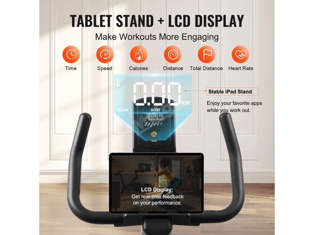Jízdní kolo je vybaveno 2směrně nastavitelnými protiskluzovými řídítky a 4směrně nastavitelným polstrovaným sedadlem, které se přizpůsobí uživatelům různé výšky. Nastavte si jej podle svých potřeb, abyste se lépe soustředili na trénink a zajistili si pohodlnější jízdu.