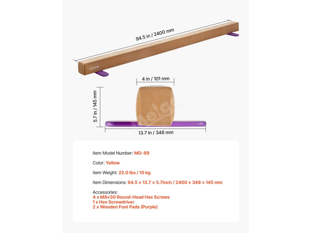 Rovnovážný trám 8ft pro děti, nosnost 158.7 kg, dřevěné jádro
