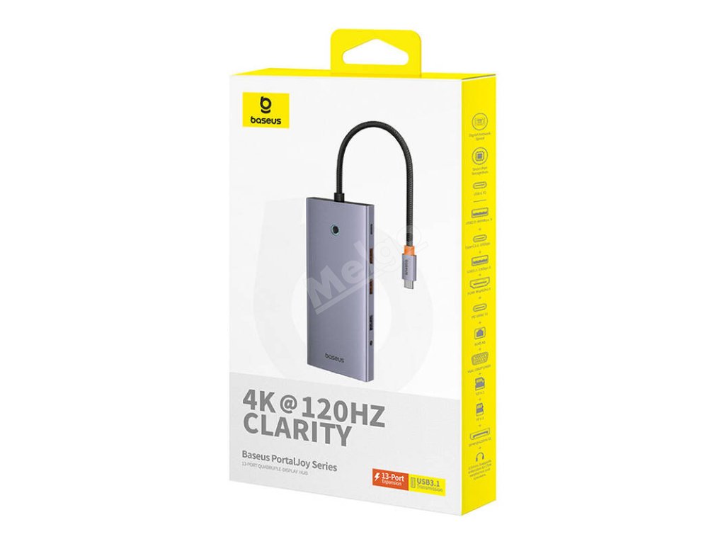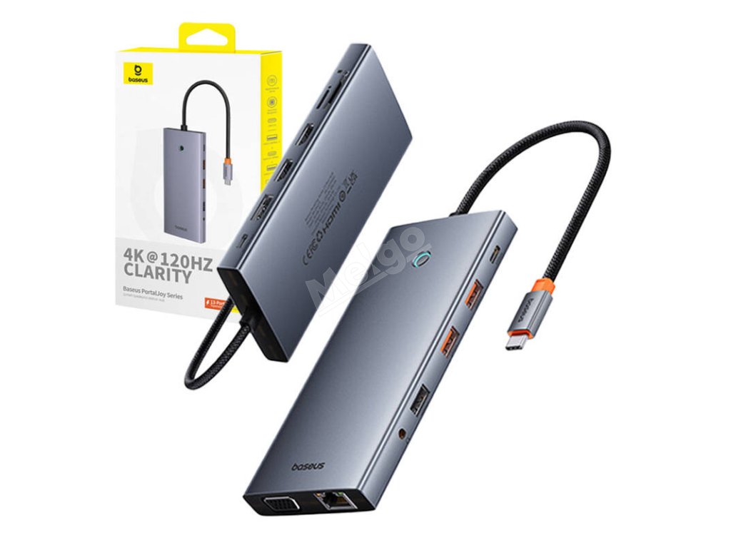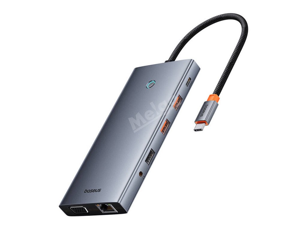Baseus PortalJoy 13 v 1 Rozbočovač USB-C na HDMI+DP+VGA+C+USB+PD+RJ45+SD/TF+3,5 mm (šedý).