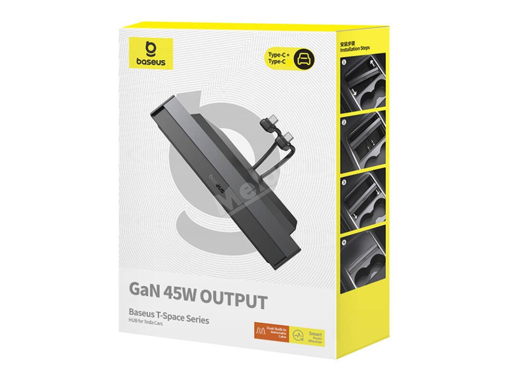 Rozbočovač Baseus je prvním zařízením svého druhu navrženým pro společnost Tesla, které využívá nabíjecí technologii GaN. Díky tomu je nabíjení rychlé a nedochází k přebíjení zařízení. Úroveň výkonu 45 W umožňuje obnovit napájení smartphonu, tabletu nebo notebooku v krátkém čase. Výrobek také podporuje různé protokoly rychlého nabíjení včetně PD3.0, FCP, SCP, QC3.0 a AFC. Poskytuje také ochranu zařízení proti nadproudu, zkratu, přehřátí atd